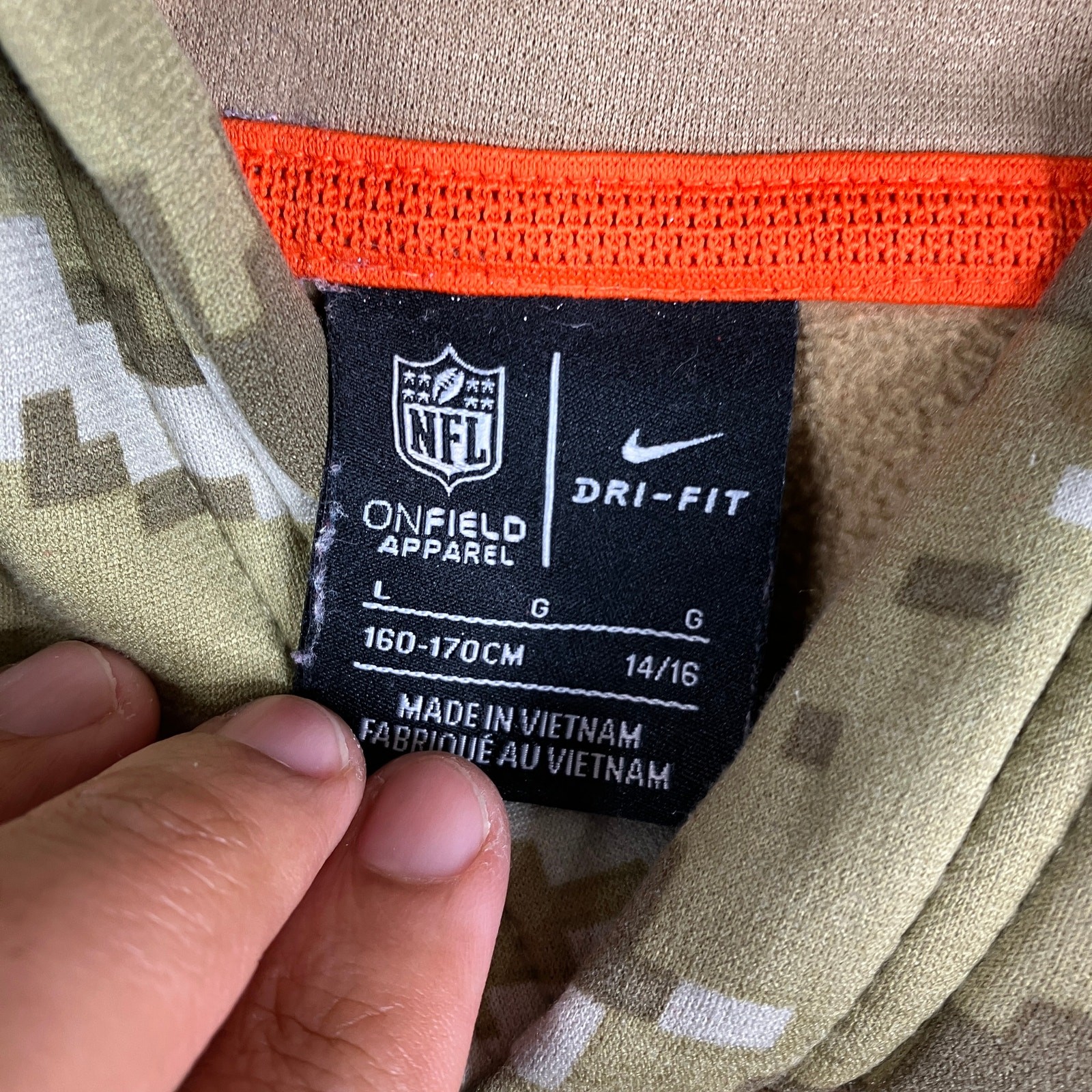 Nike Hoodie Boys Size Large Tan Denver Broncos NFL Camo Dri-Fit Salute to