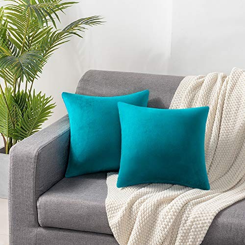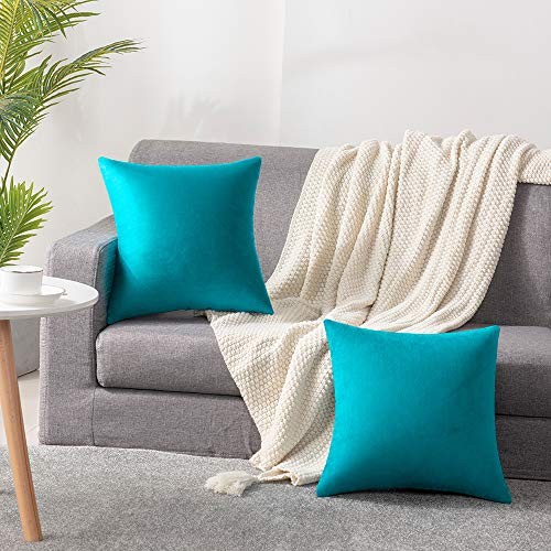 Throw Pillow Cases 18x18: 2 Pack Cozy Soft Velvet Square 18 x 18-Inch Turquoise