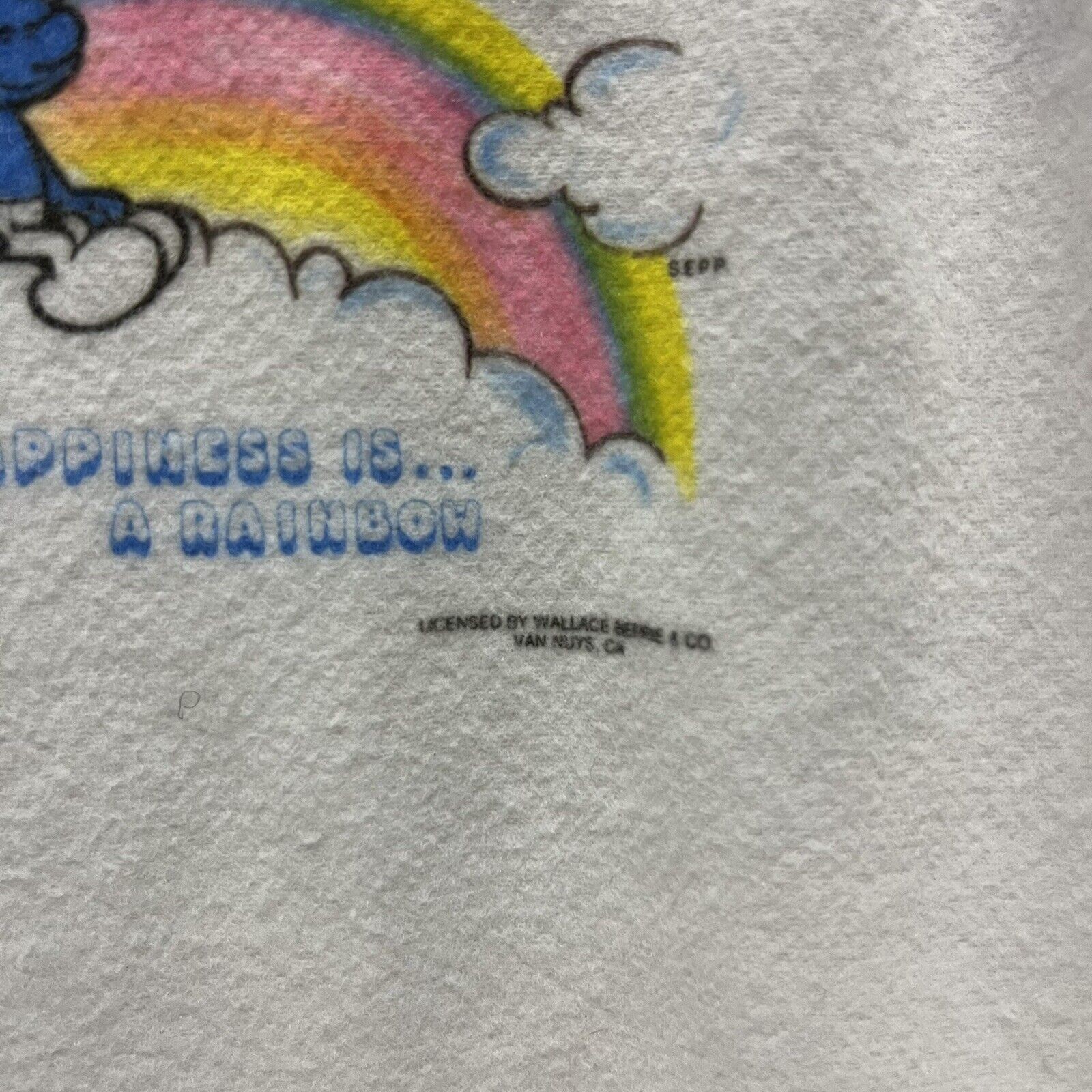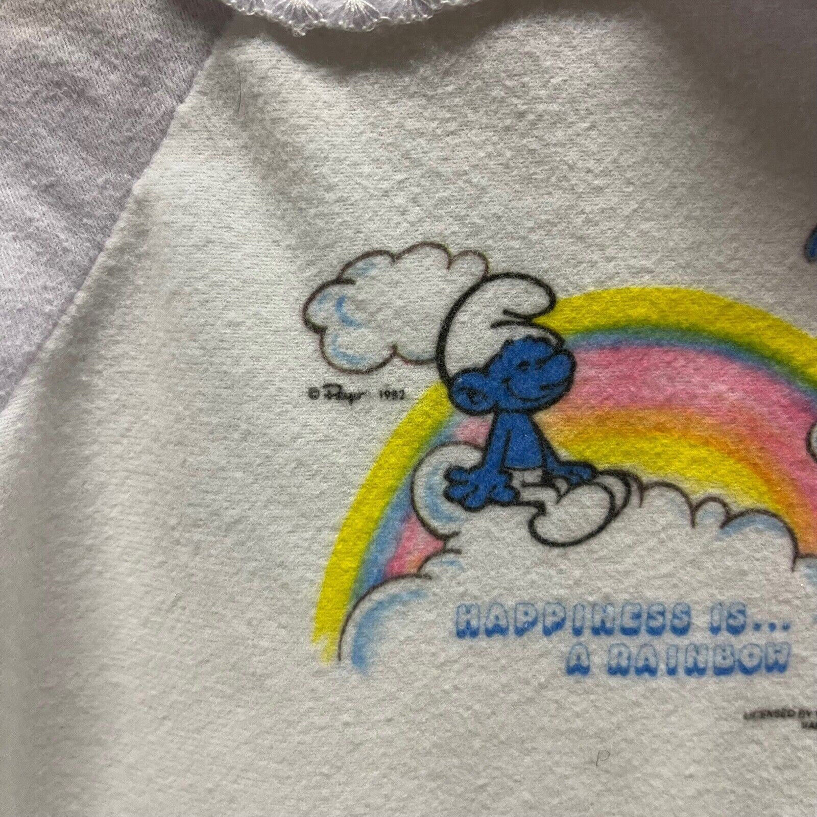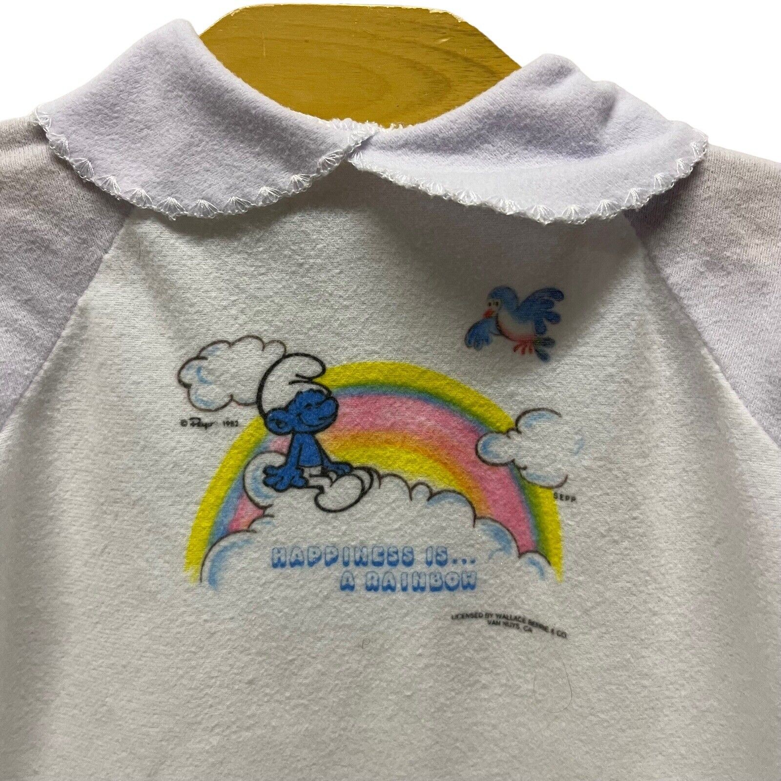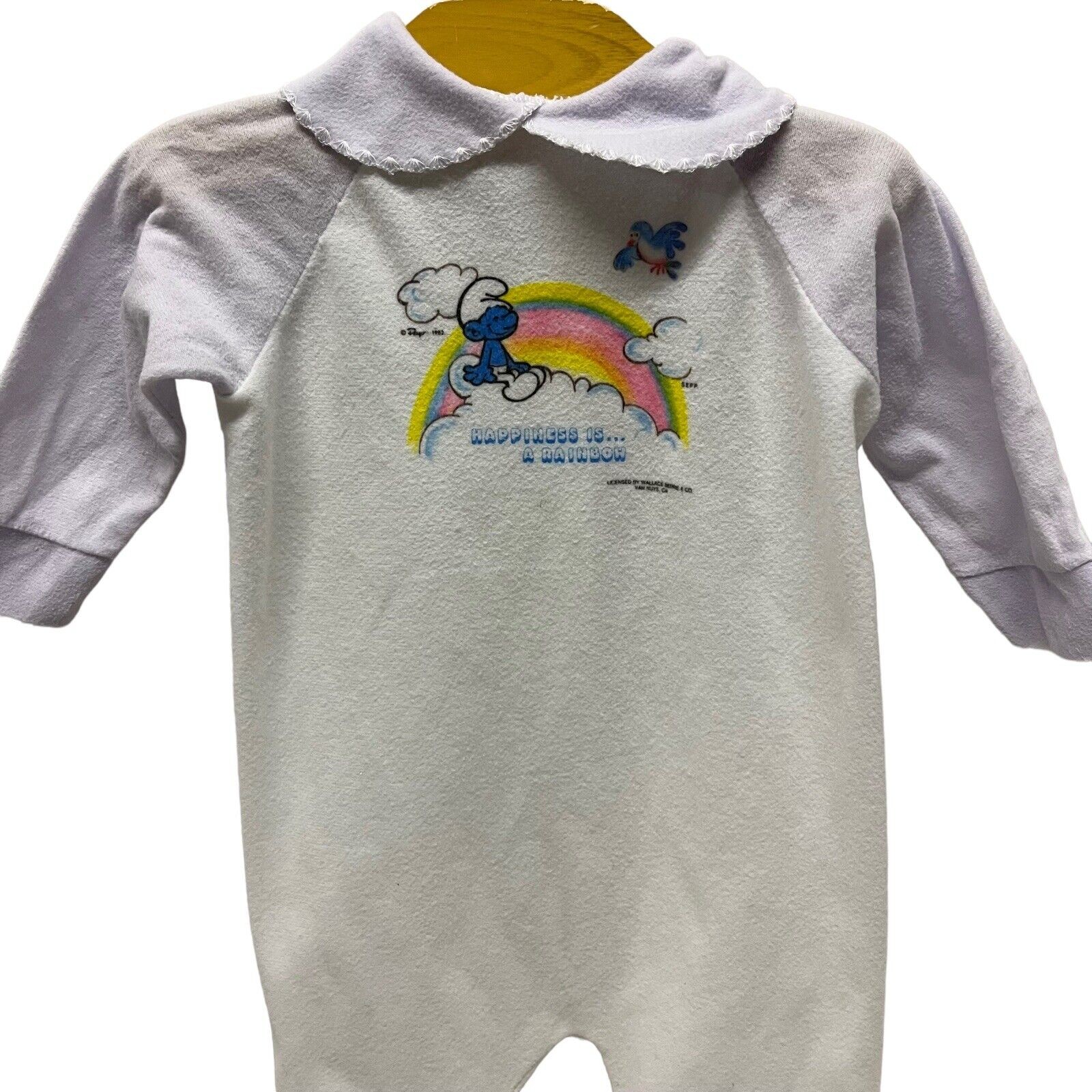 Vintage 80s SMURFS Baby Girl Sleeper 3-6M White/Purple Happiness Is A Rainbow