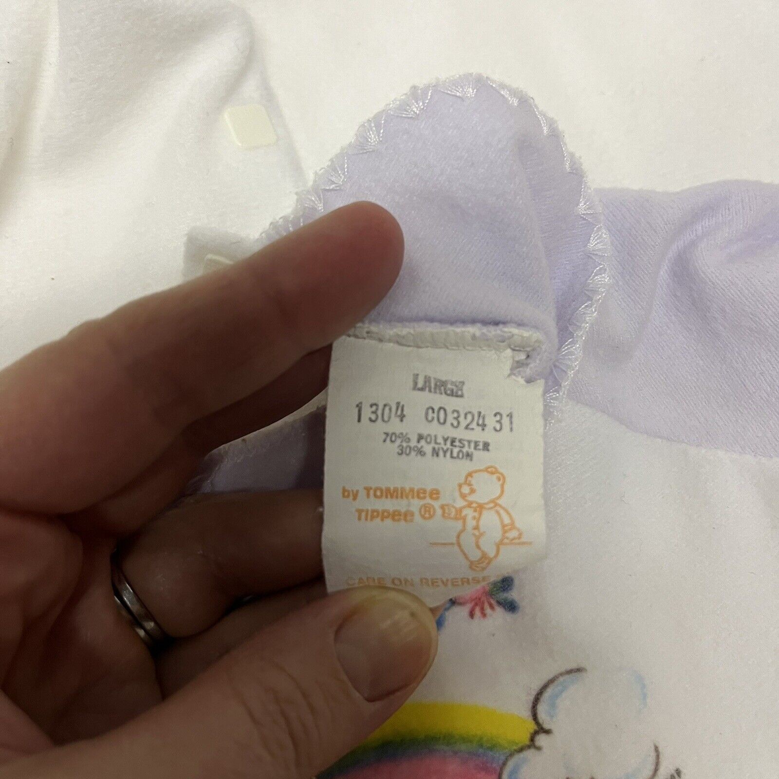как выглядит Vintage 80s SMURFS Baby Girl Sleeper 3-6M White/Purple Happiness Is A Rainbow фото