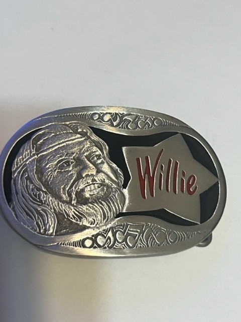 Willie Nelson Pewter Green/White Enamel Belt Buckle Country Music Very Nice