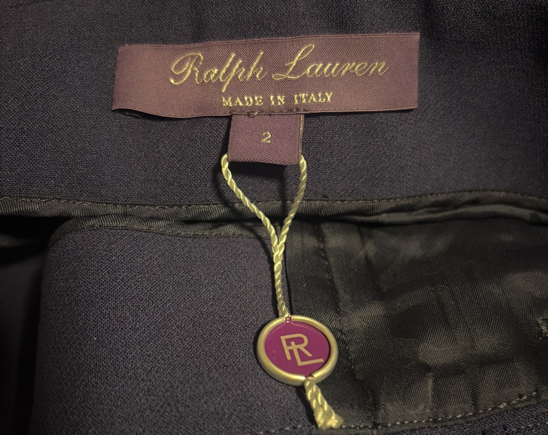 NWT Ralph Lauren Purple Label Ramona Embellished Stretch Wool Pant Size 2 Blue