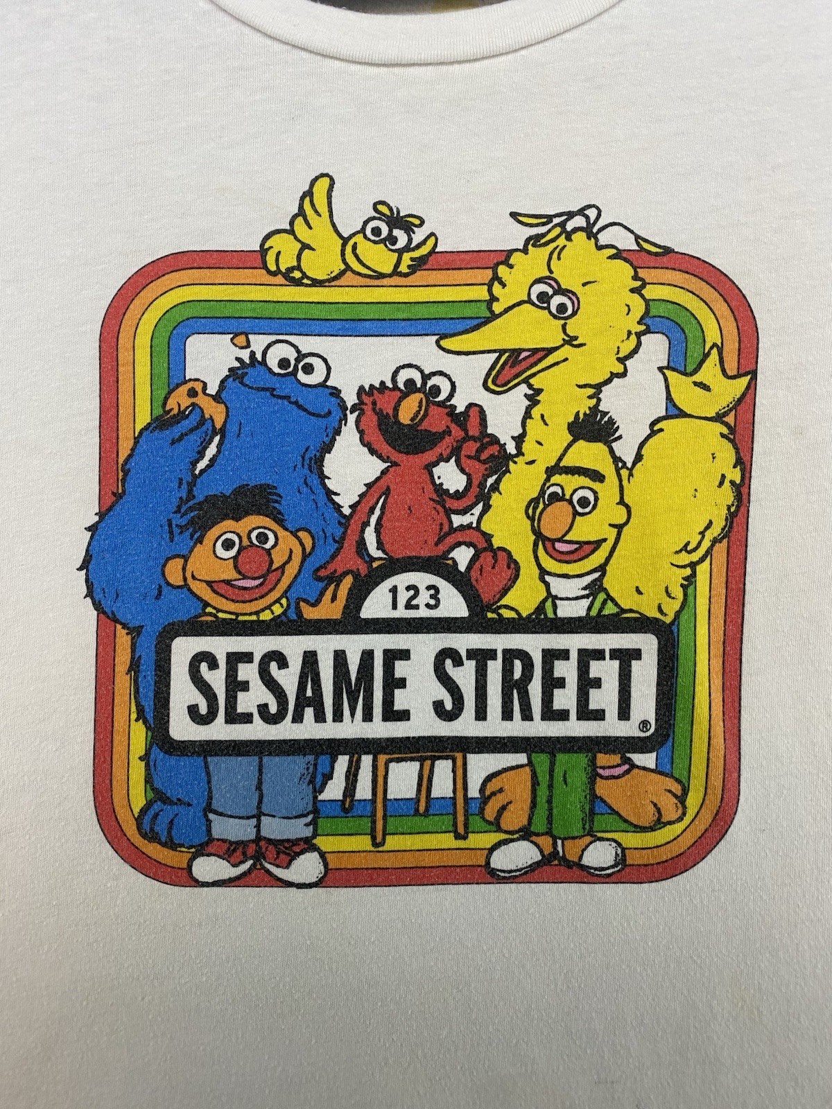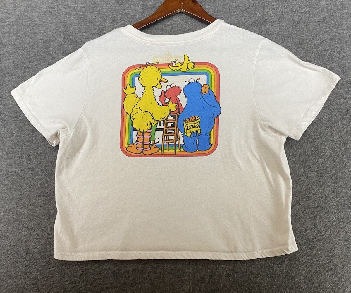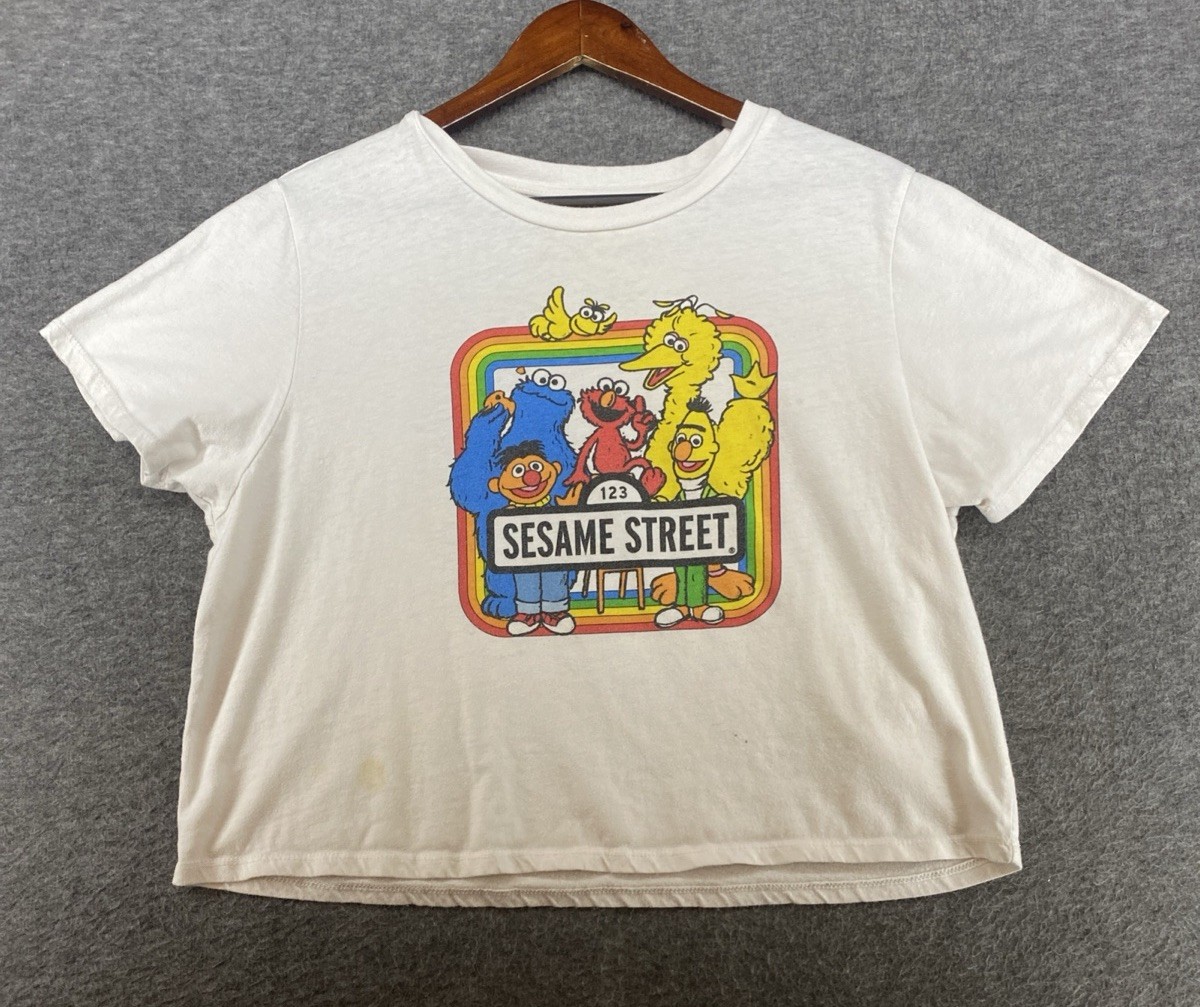 Sesame Street Cropped White Colorful Graphic Tee Women's Size Medium SEE PICS