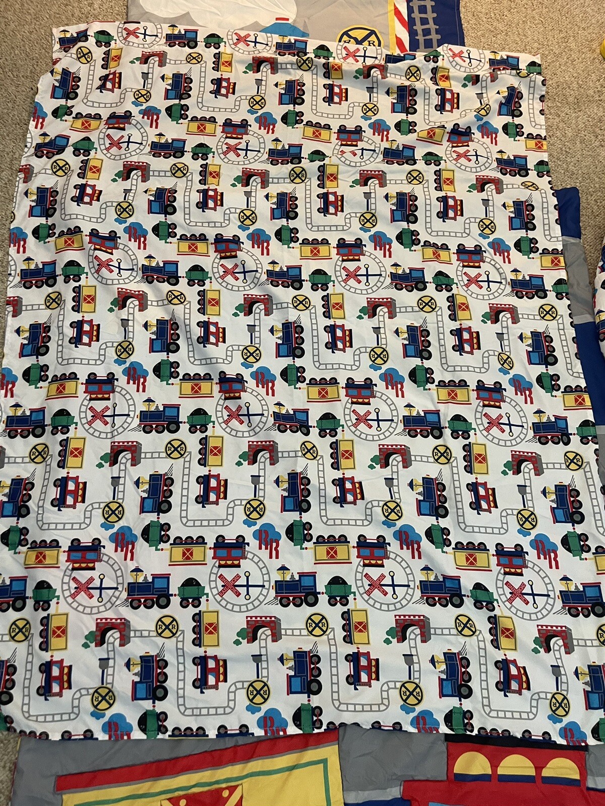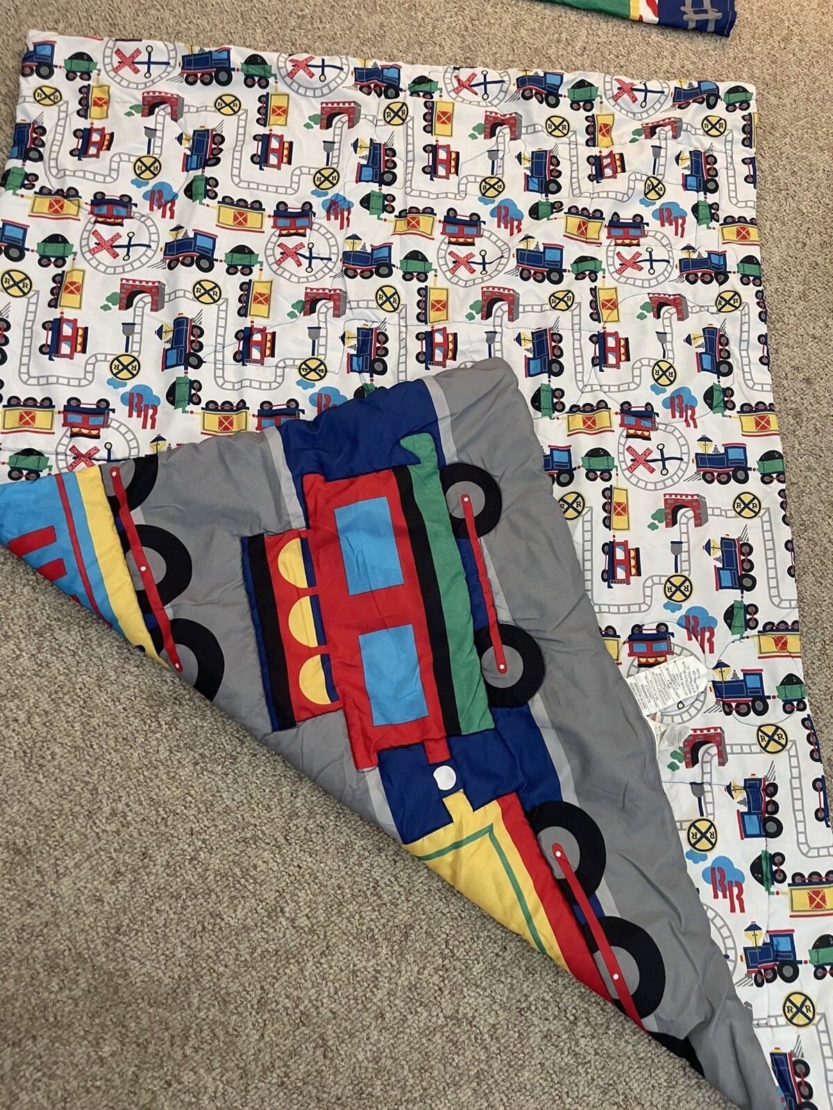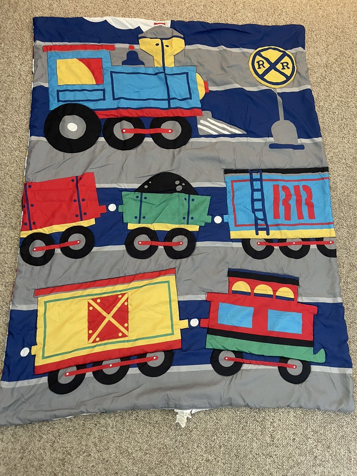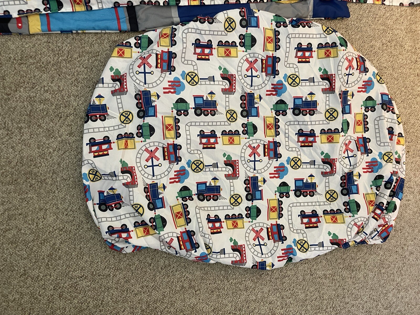 как выглядит Train Railroad 4 Piece Crib Set Bedspread Fitted And Flat Sheet Pillow Sham фото