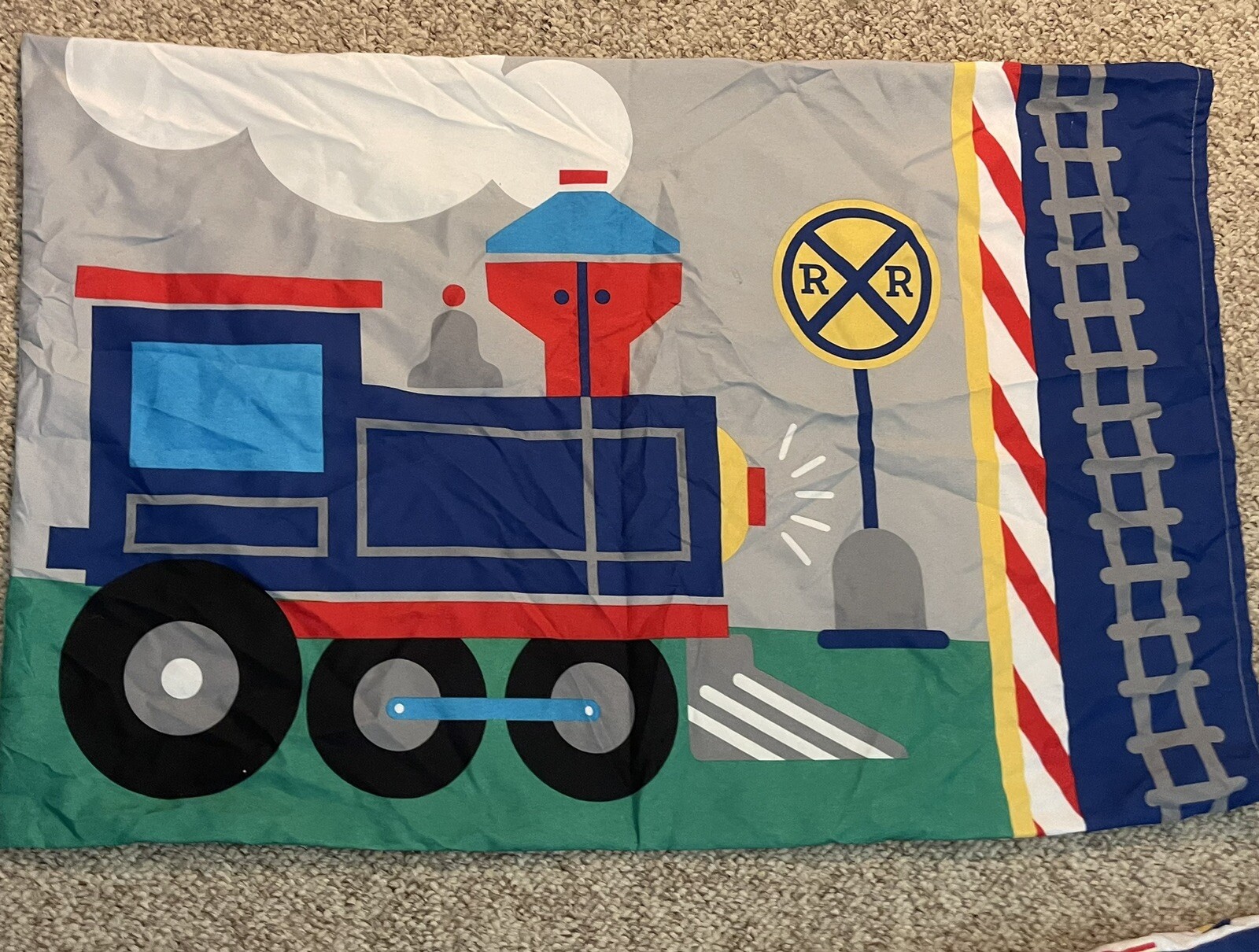 Train Railroad 4 Piece Crib Set Bedspread Fitted And Flat Sheet Pillow Sham