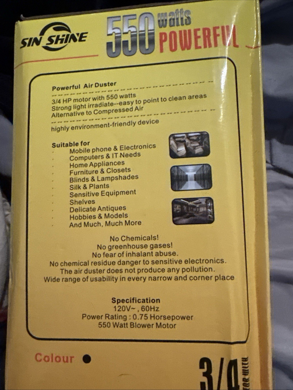 Air Duster Powerful 550 Watt with 3/4 HP motor with Attachments New In the Box