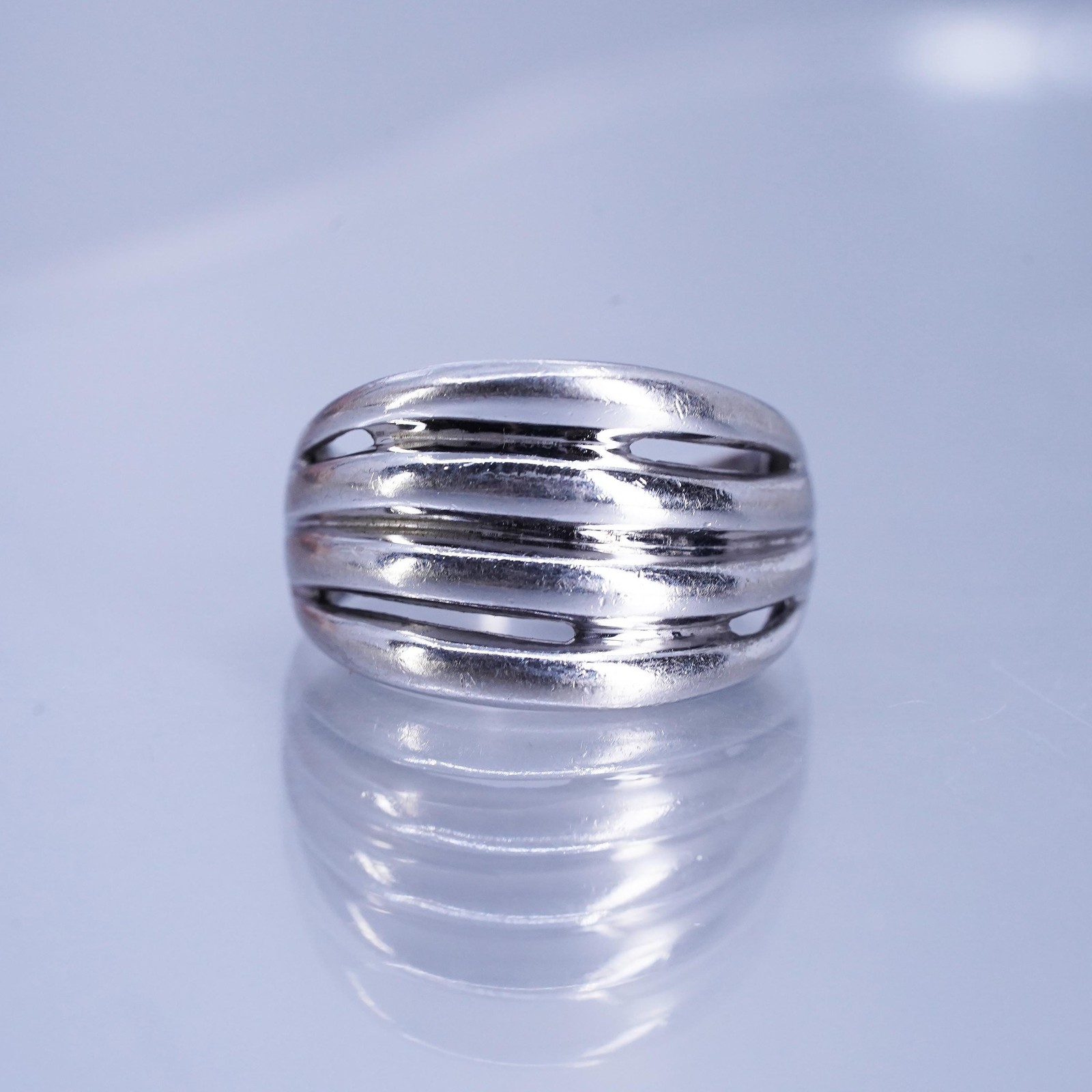 как выглядит Size 6.75, vintage Sterling 925 silver handmade ring, modern ribbed band фото