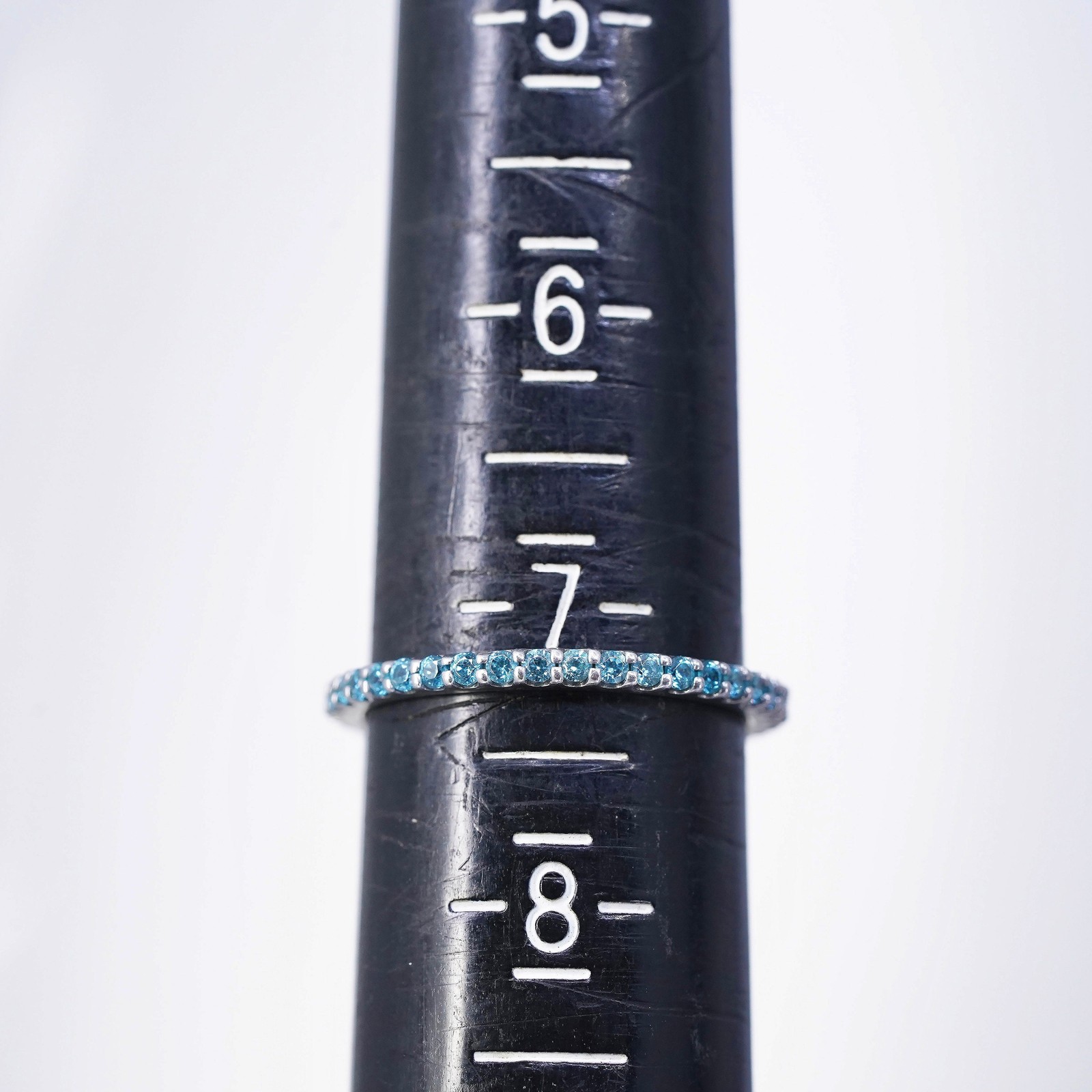 как выглядит Size 7.25, vintage southwestern Sterling 925 silver wedding ring, blue Cz band фото