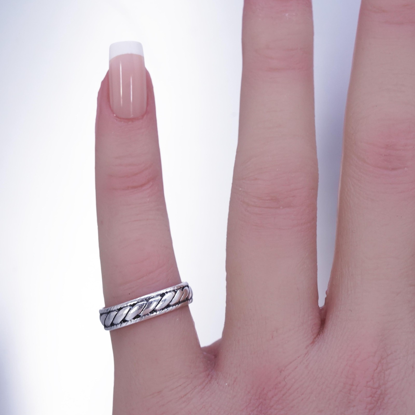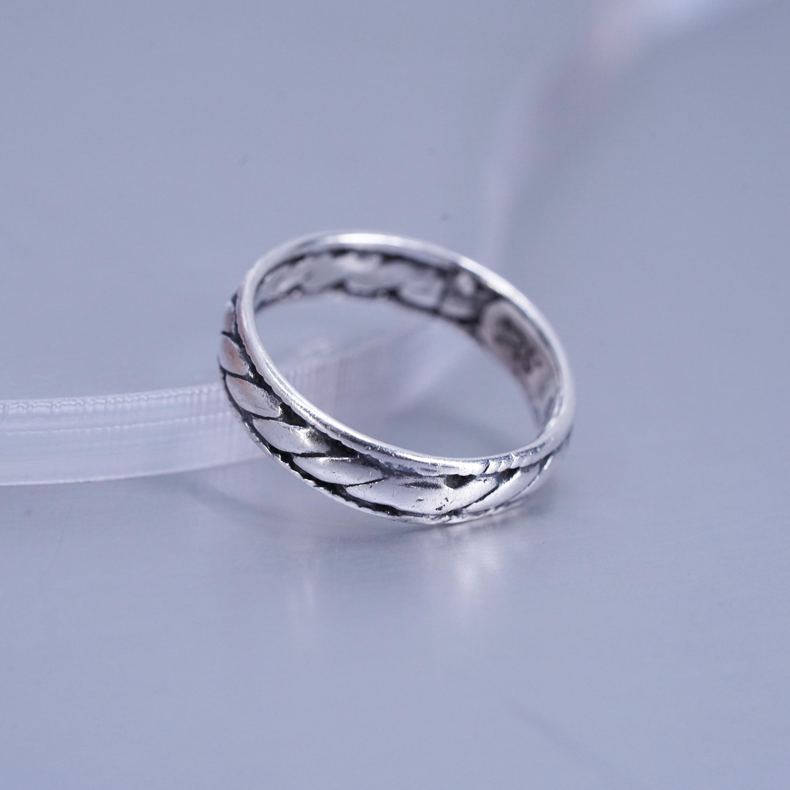 как выглядит Size 5, vintage southwestern Sterling 925 silver statement ring, band w/ cable фото