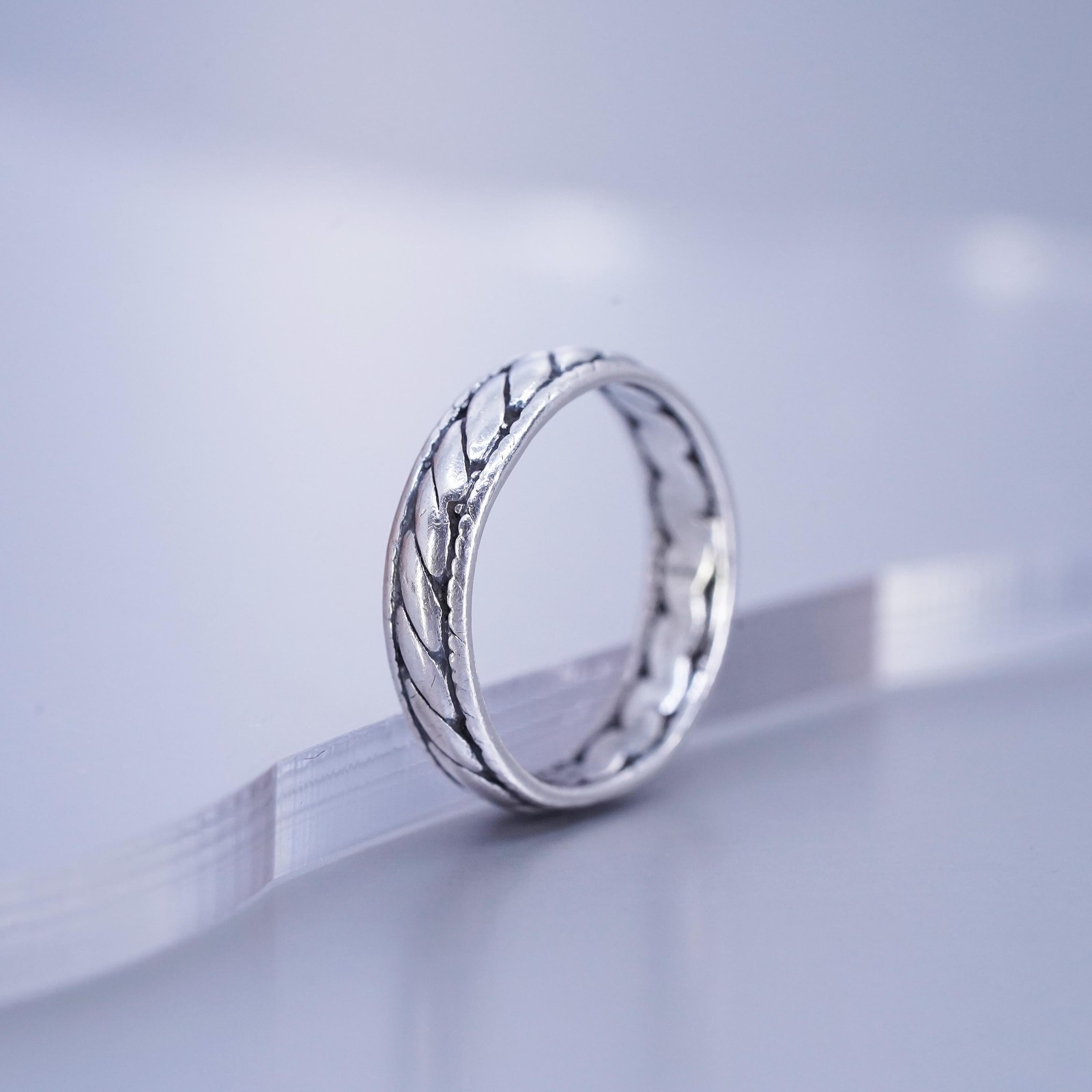 Size 5, vintage southwestern Sterling 925 silver statement ring, band w/ cable