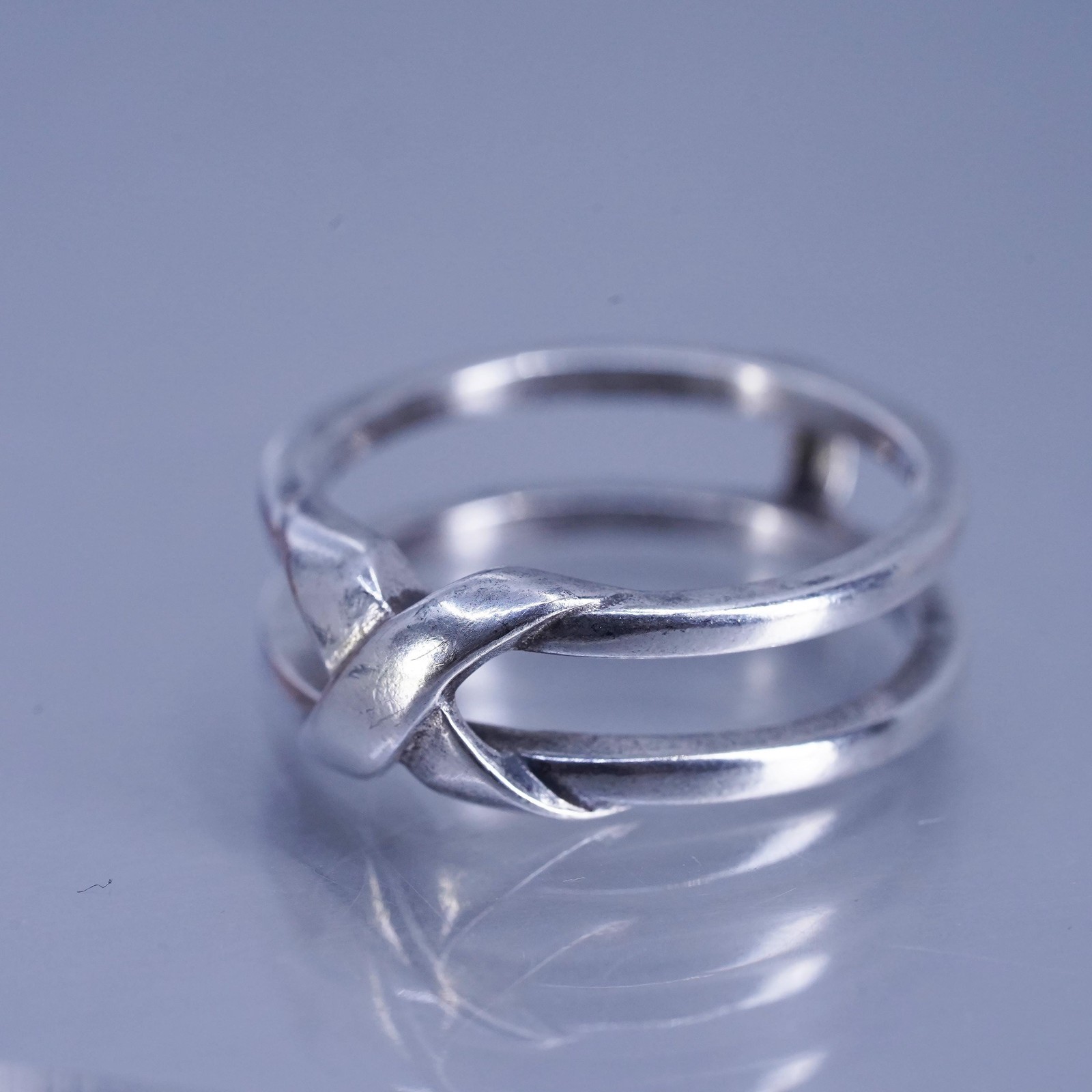как выглядит Size 10, vintage Sterling 925 silver ring, crossed double band фото