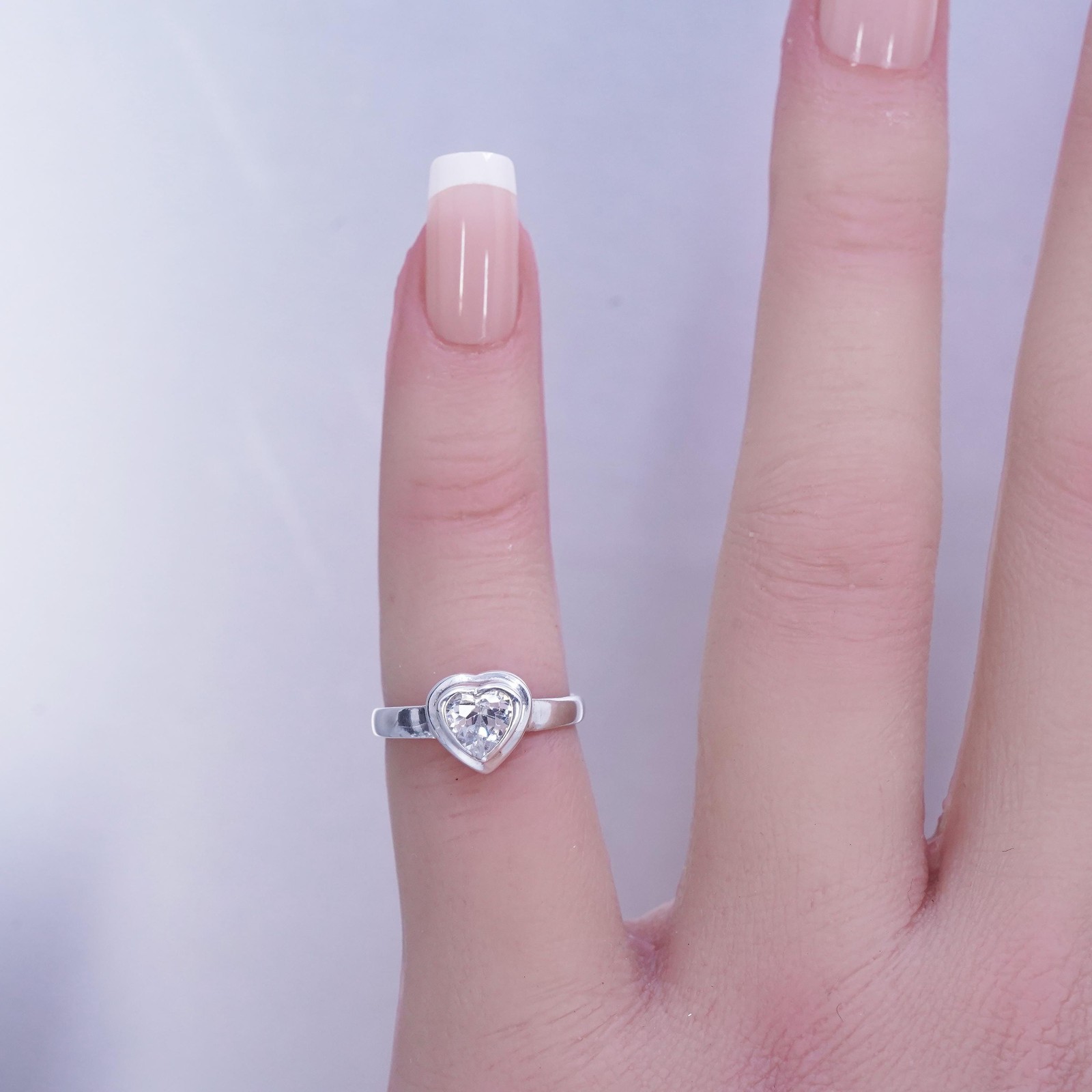 как выглядит Size 3.25 vintage Sterling 925 silver engagement double ring with heart Cz фото