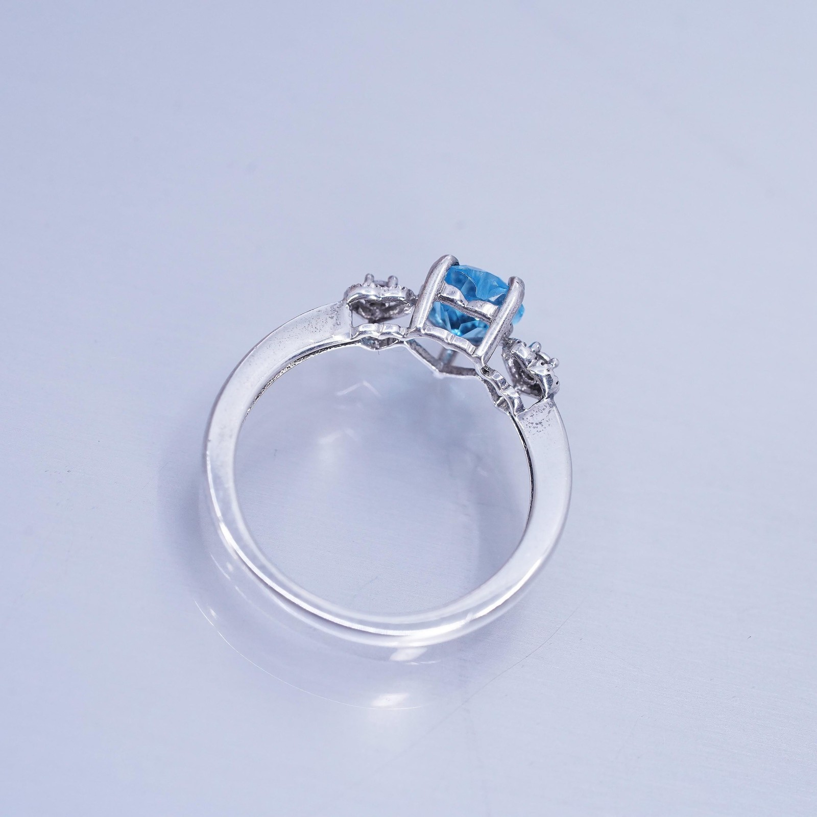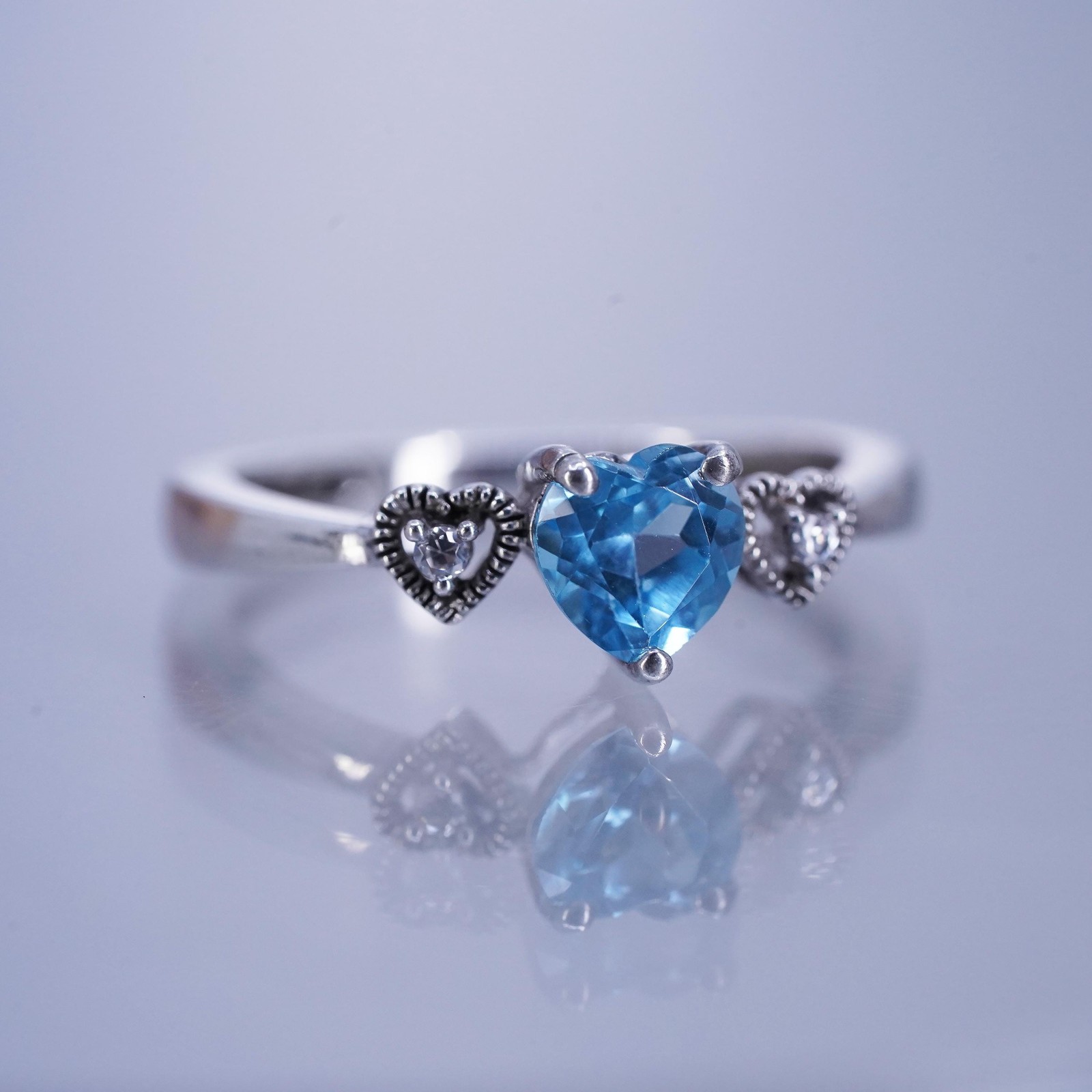 как выглядит size 7, vintage Sterling Silver 925 Ring engagement TOPAZ ring, heart with cz фото