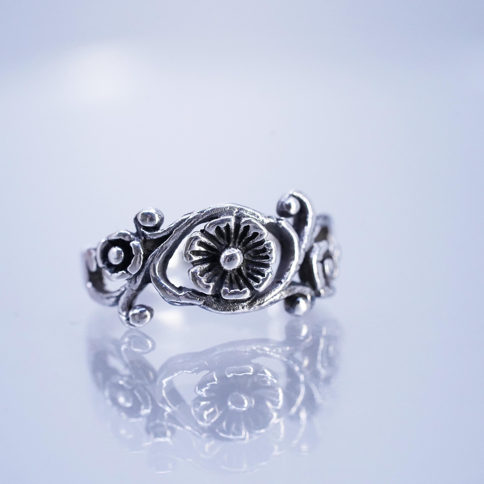 Size 3.5, vintage southwestern Sterling 925 silver ring, cluster flower band