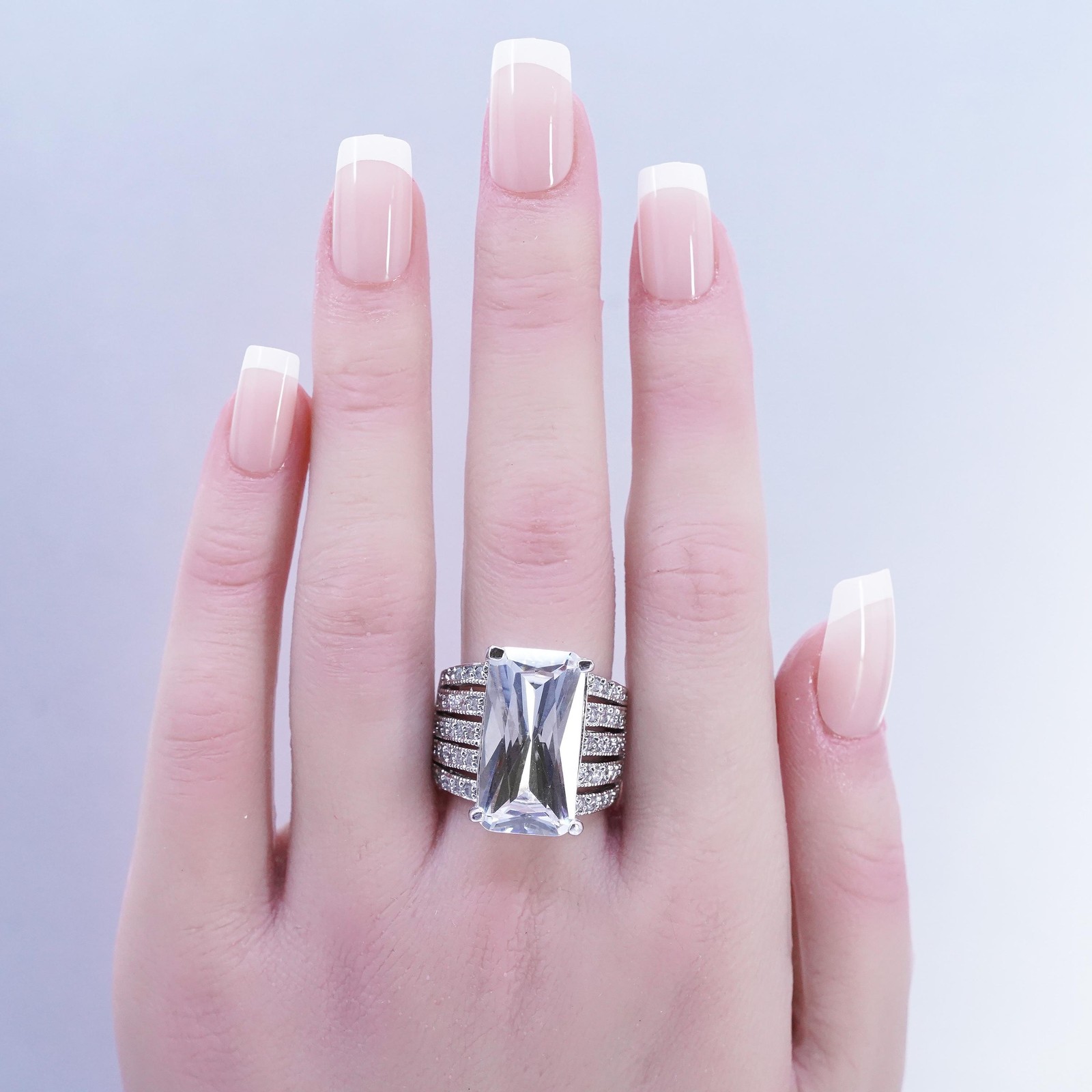 как выглядит Size 8, vintage Sterling 925 silver engagement ring with cluster mega shiny Cz фото
