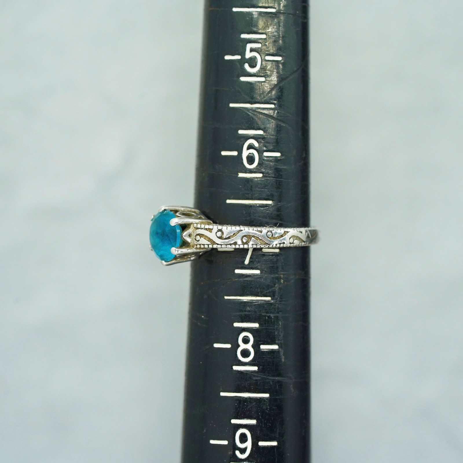 как выглядит Size 7, vintage Sterling 925 silver handmade ring with blue topaz фото