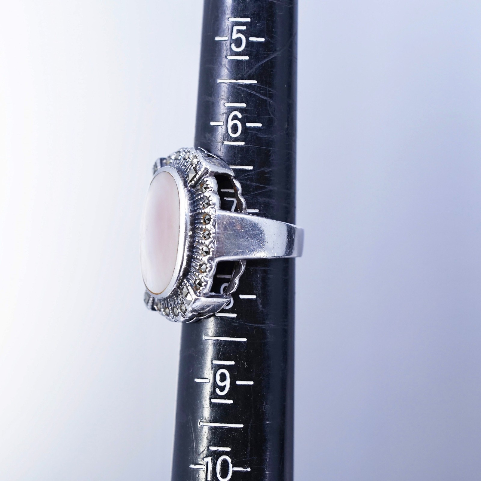 Size 7, vintage Sterling 925 silver handmade ring w/ mother of pearl marcasite