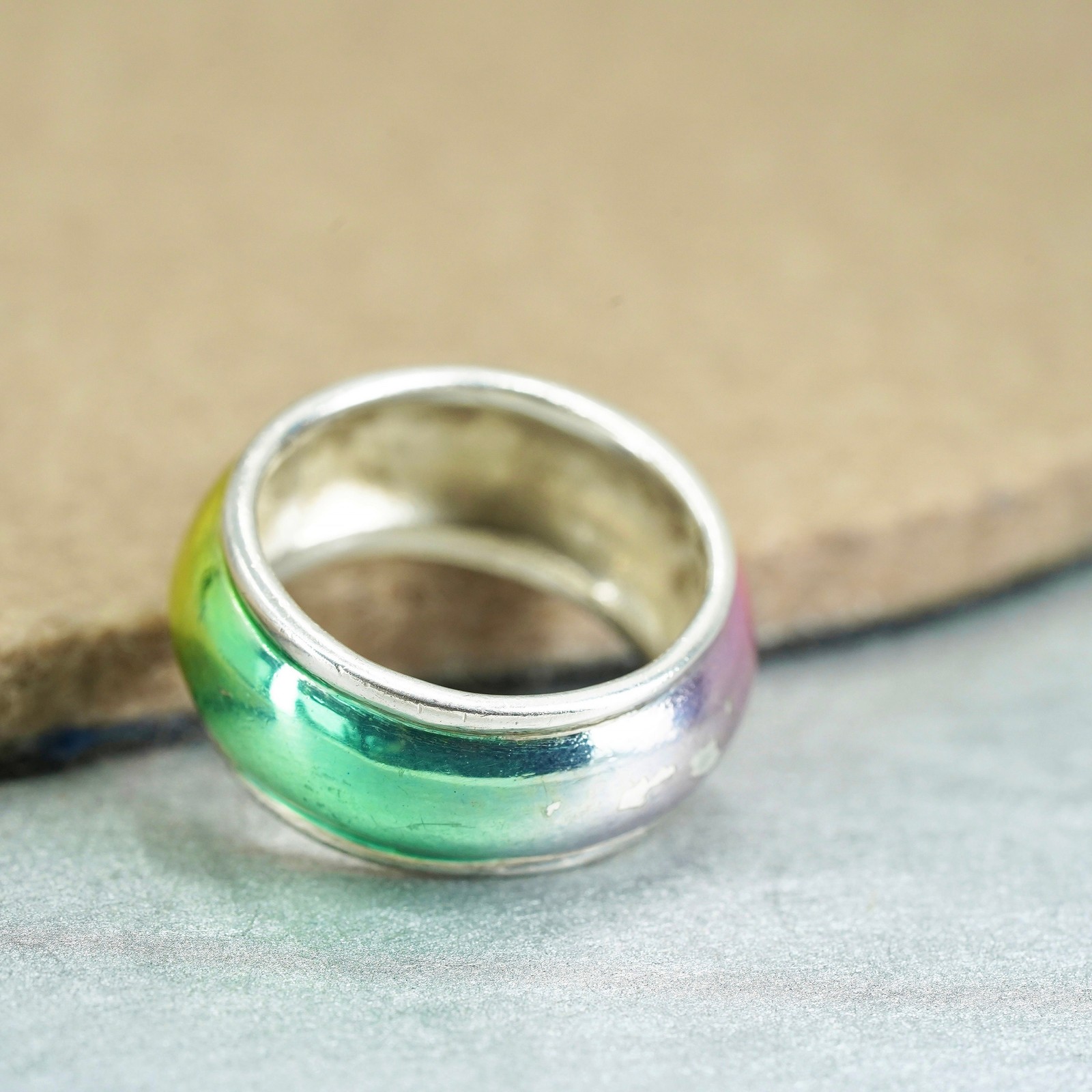 Size 7.5, vintage Sterling 925 silver handmade ring, ribbed band