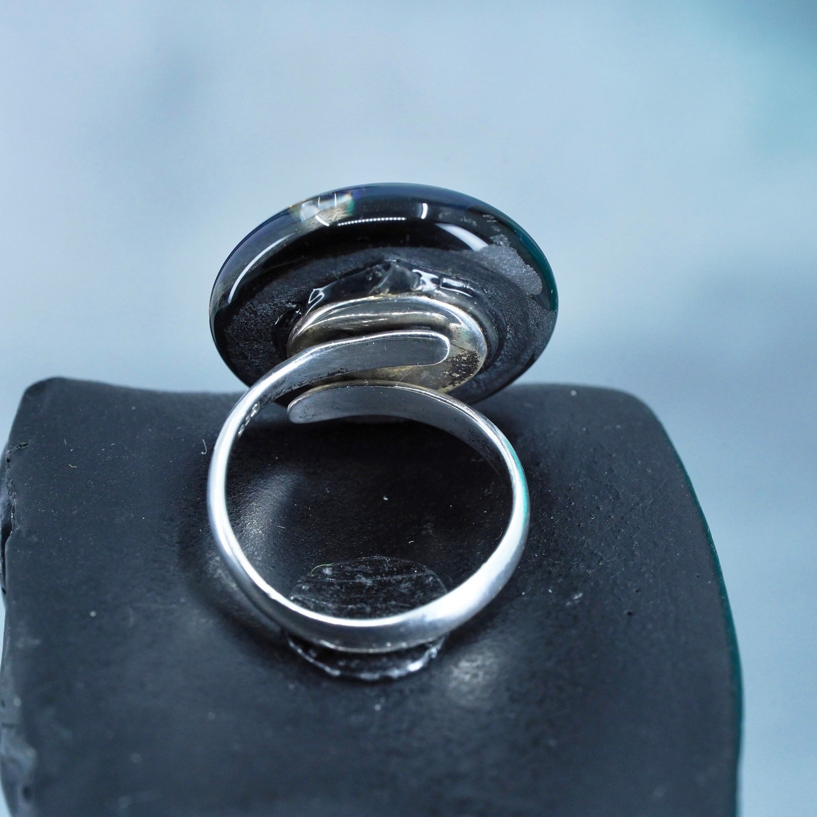 как выглядит Size adjustable, Sterling 925 silver handmade cocktail ring w/ foiled glass фото