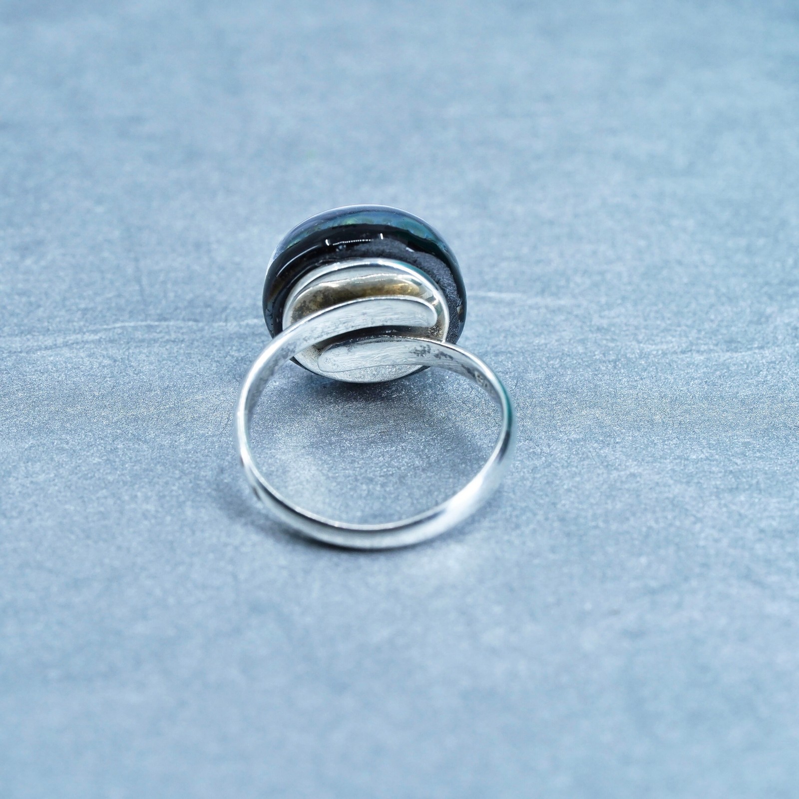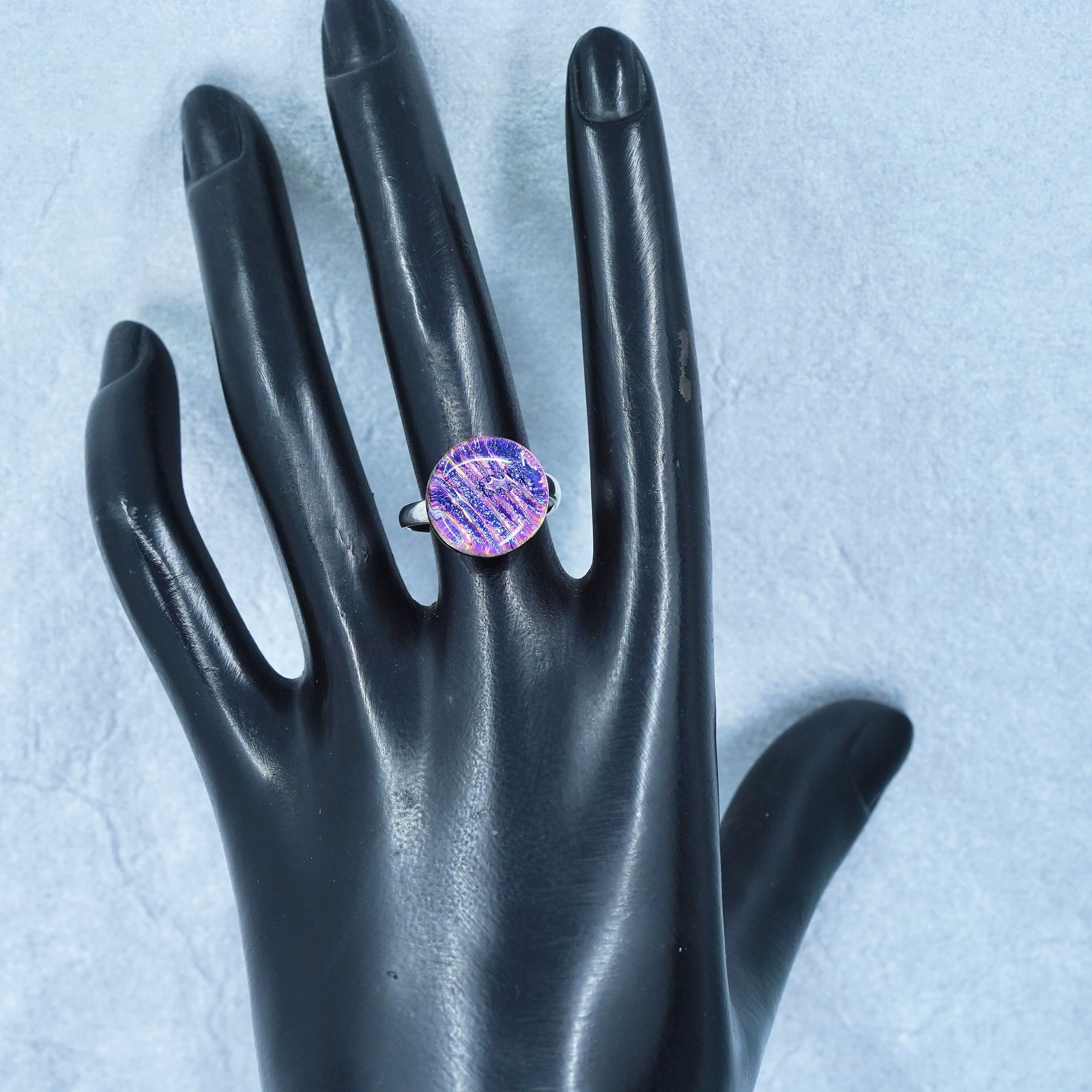 Size 6.75, w/ Sterling 925 silver handmade cocktail ring with pink foiled glass