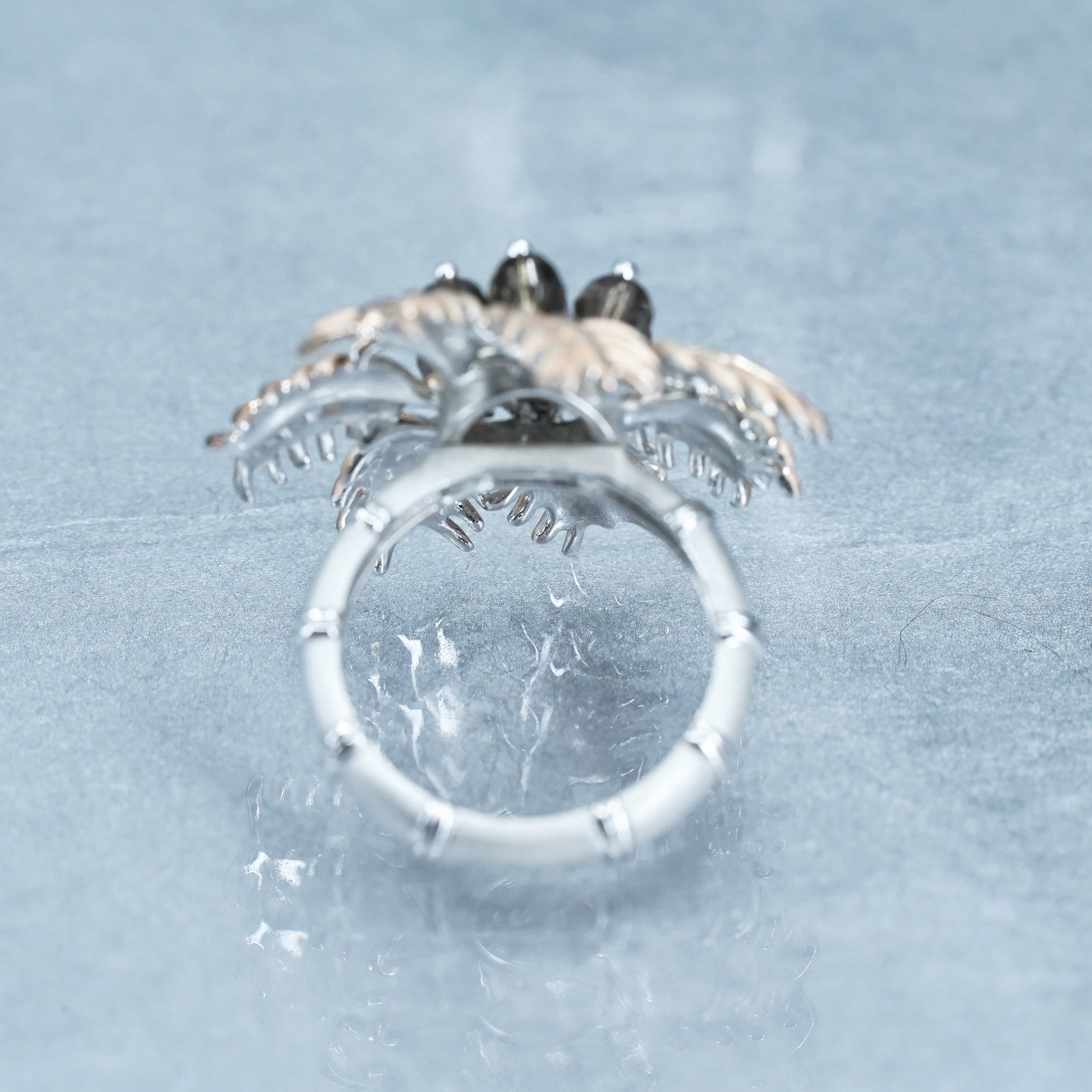 Size 8, two tone Sterling 925 silver handmade coconut tree ring smoky quartz