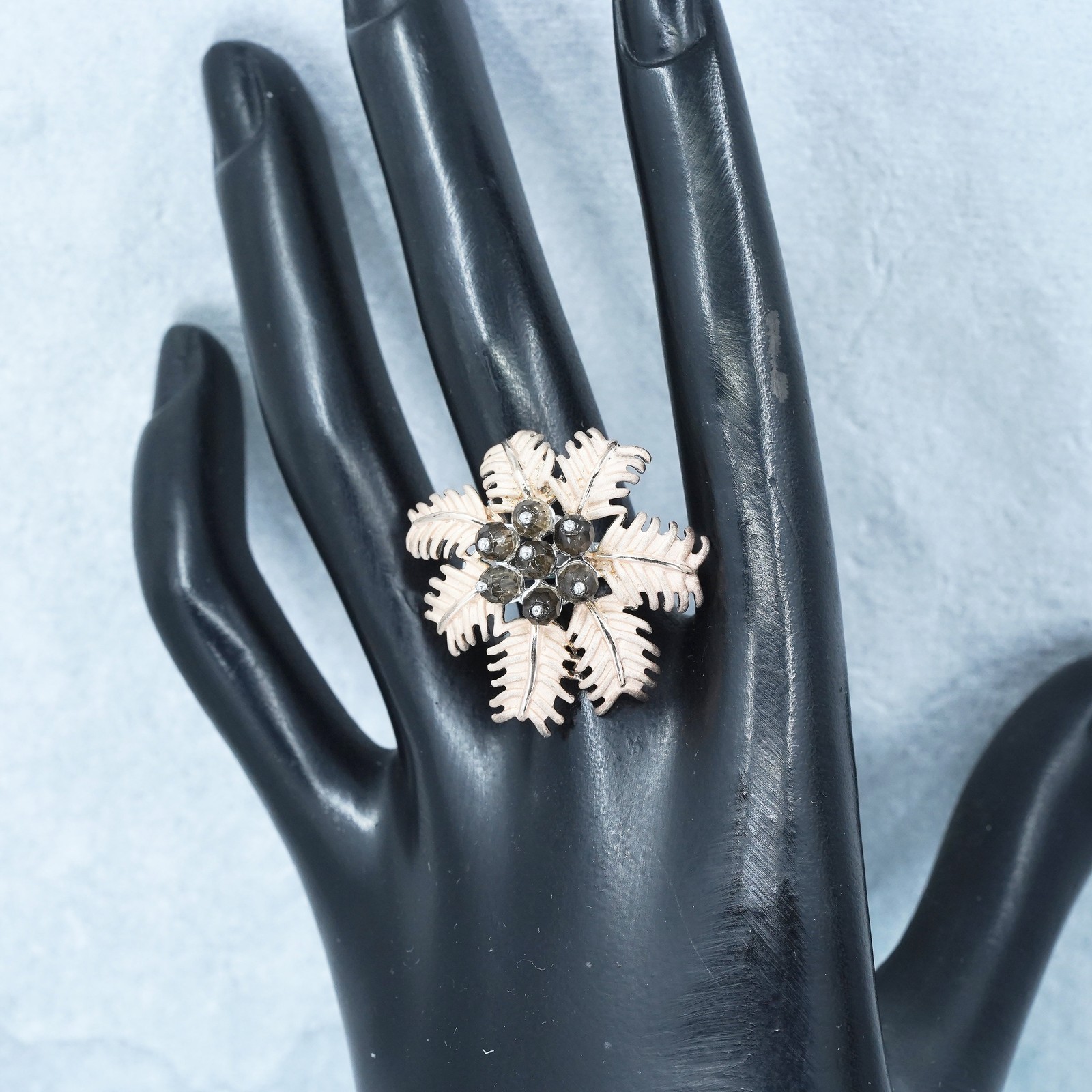 как выглядит Size 8, two tone Sterling 925 silver handmade coconut tree ring smoky quartz фото