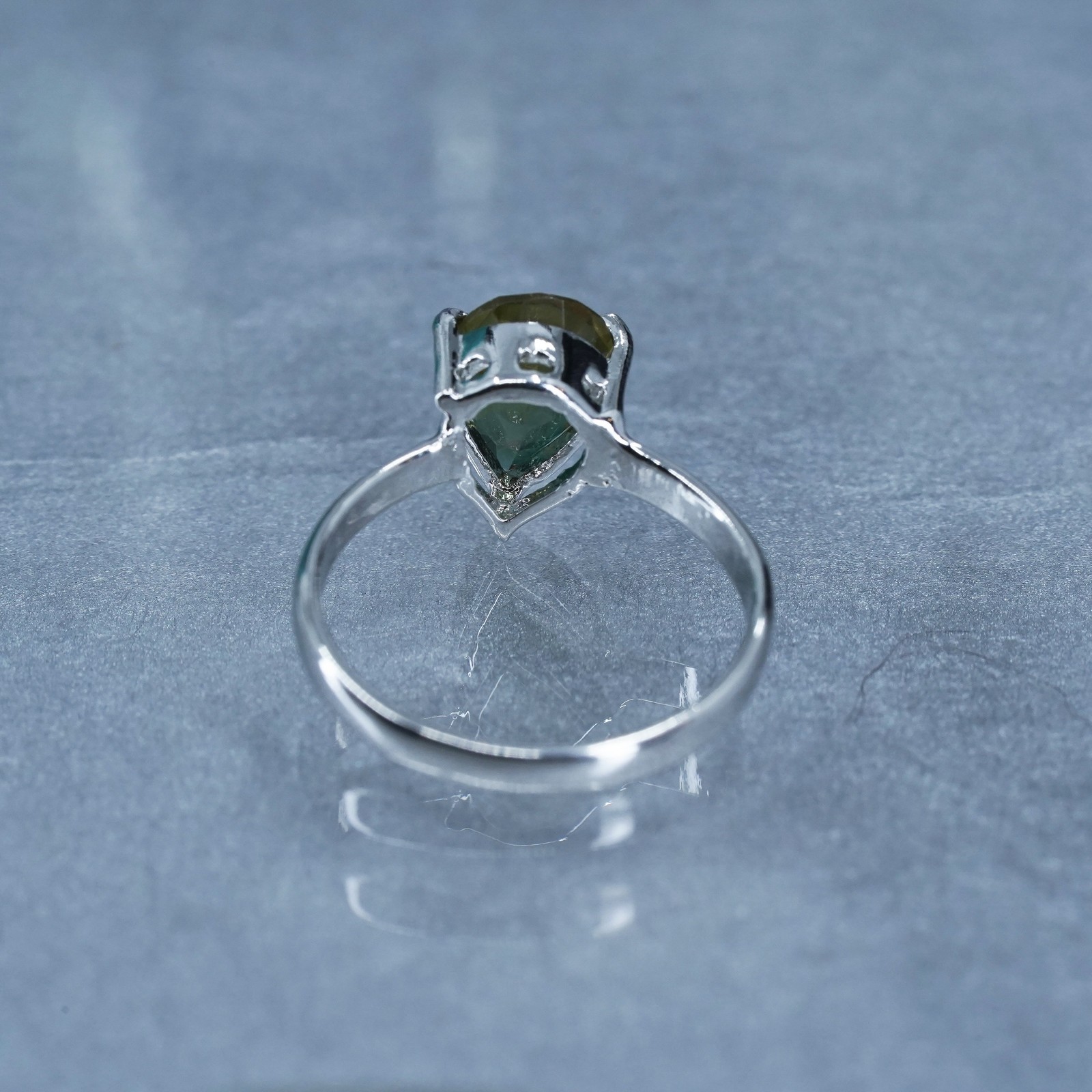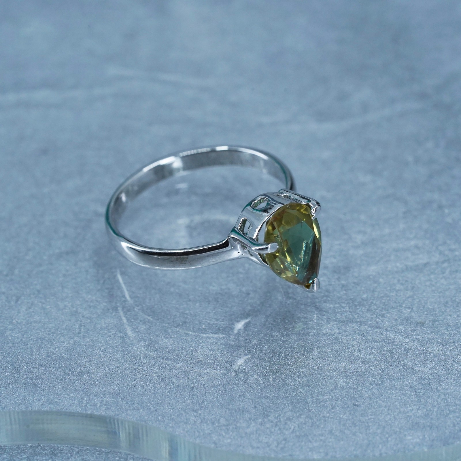 Size 7.75, vintage Sterling 925 silver handmade ring with teardrop citrine