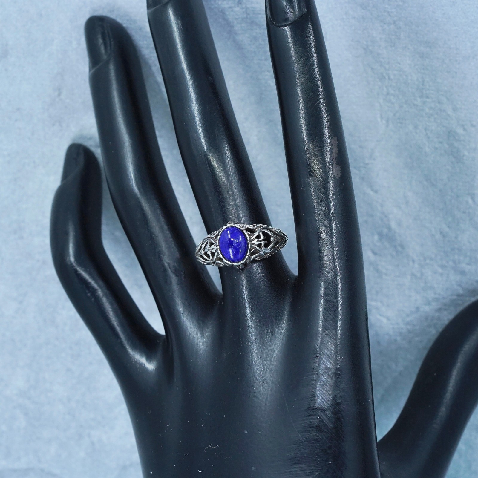 как выглядит Size 7, southwestern Sterling 925 silver handmade band ring oval lapis lazuli фото