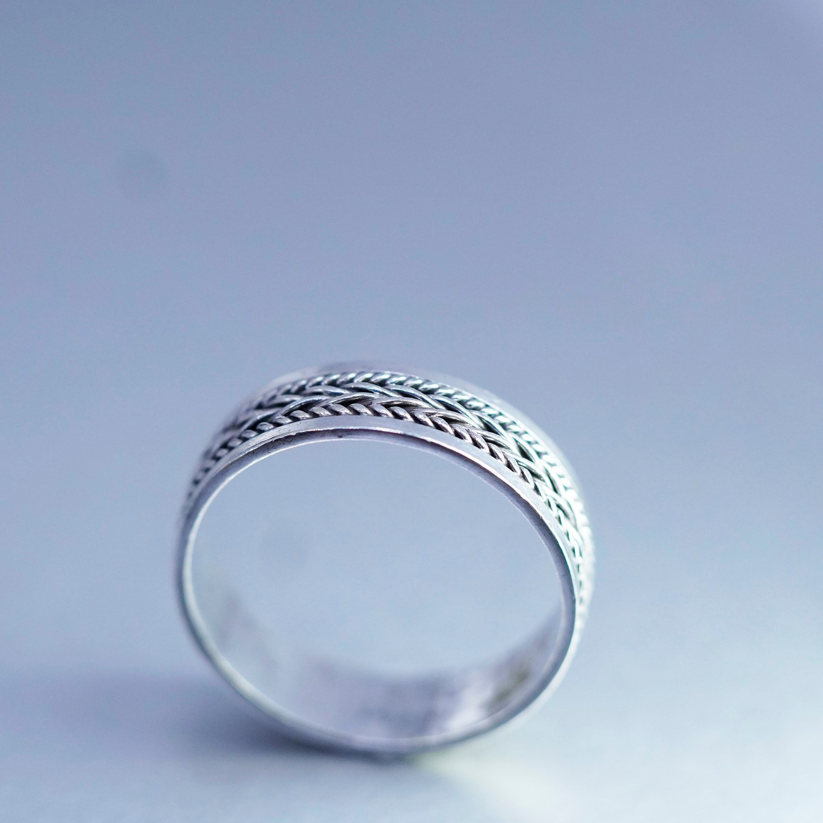 Size 14, vintage southwestern Sterling 925 silver statement ring, band w/ cable
