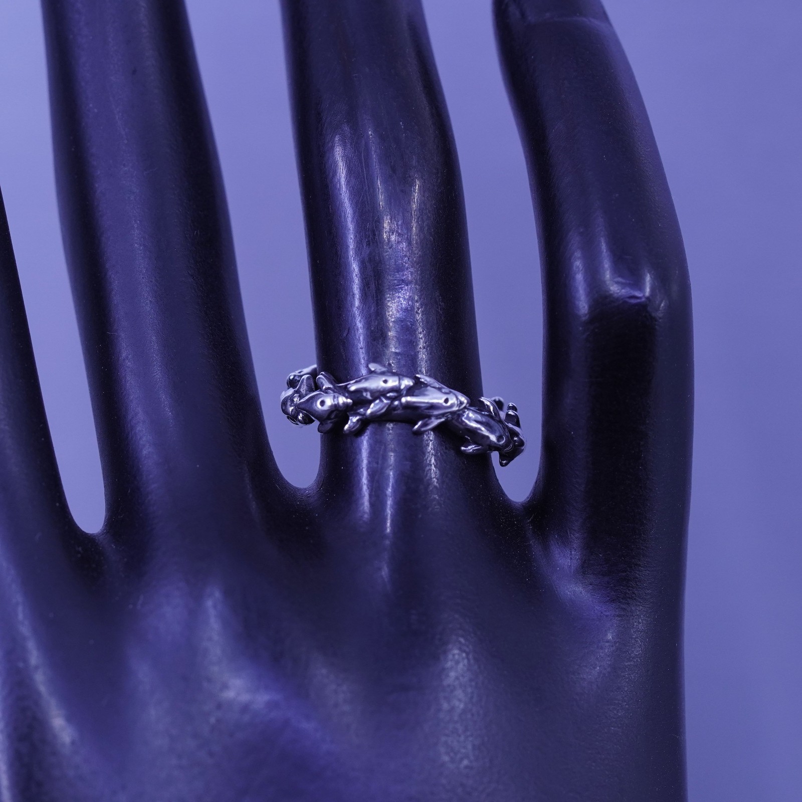 как выглядит Size 6.25, vintage KBN modern Sterling 925 silver handmade dolphin ring фото