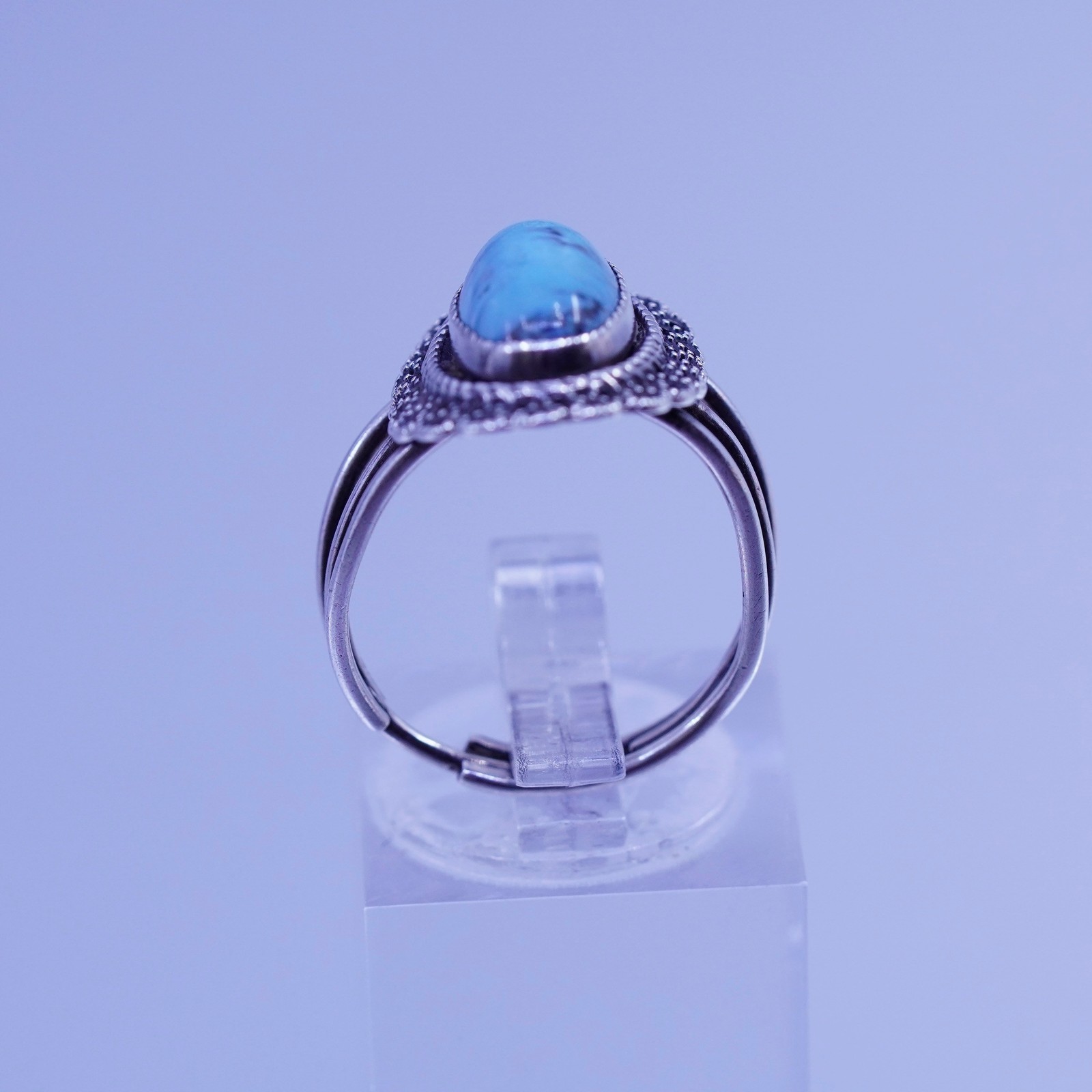 как выглядит Size adjustable, Beau Sterling 925 silver handmade filigree ring with turquoise фото