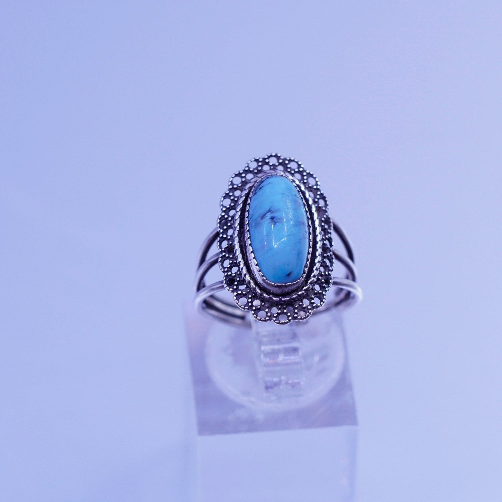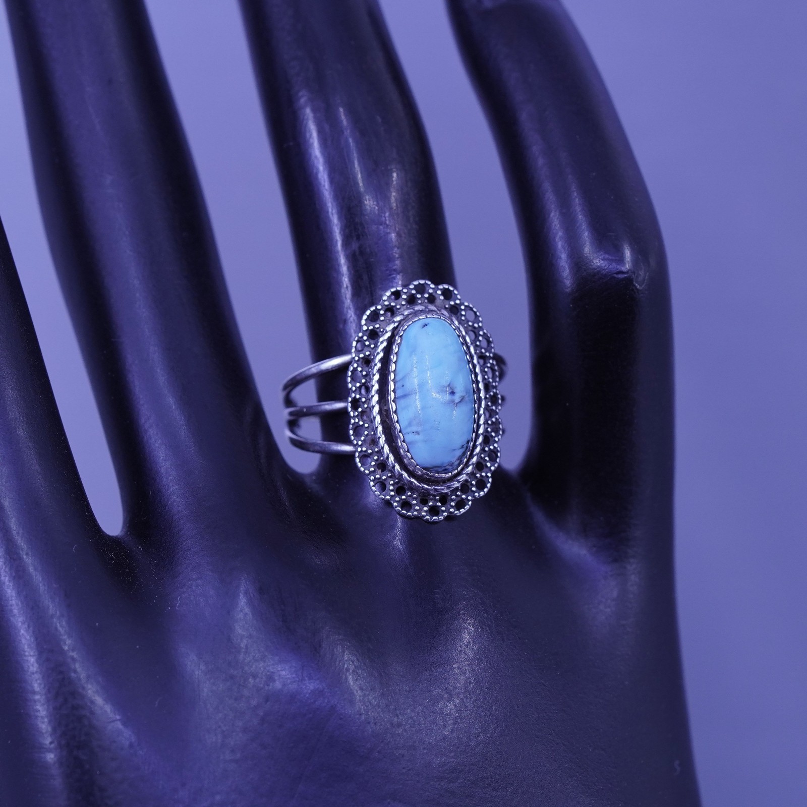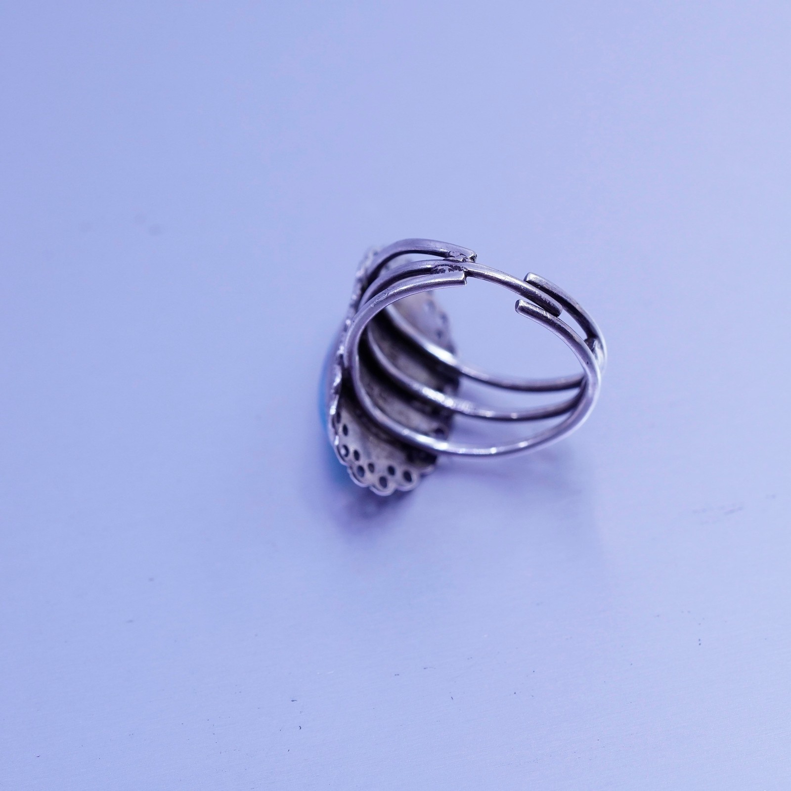 Size adjustable, Beau Sterling 925 silver handmade filigree ring with turquoise