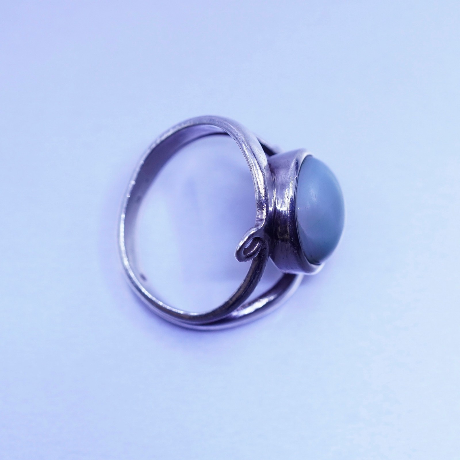Size 5, vintage Sterling 925 silver handmade ring with Larimar
