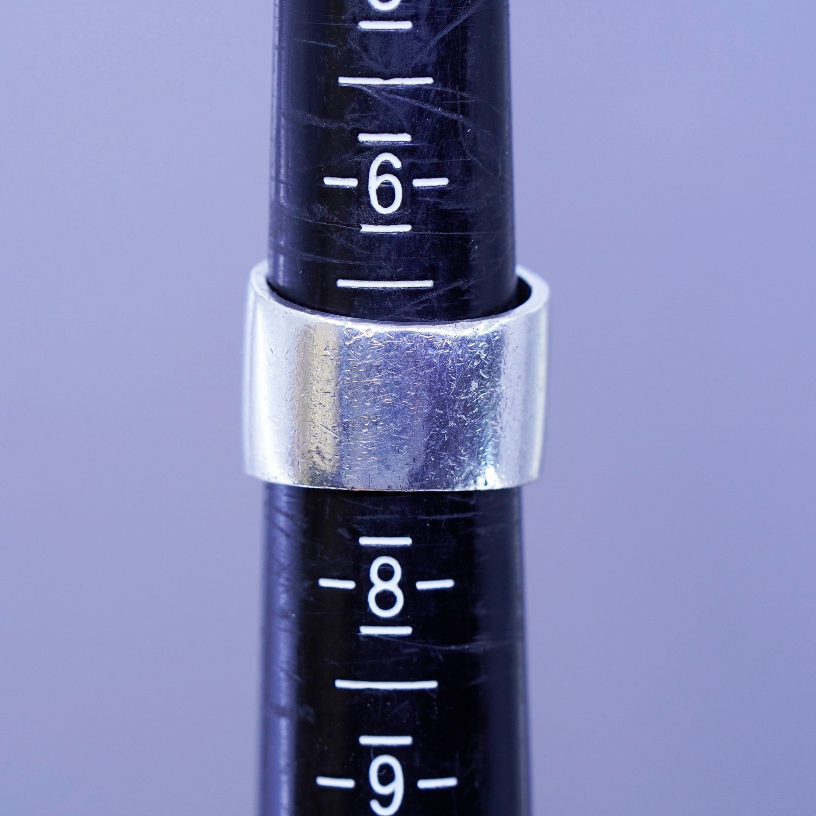 Size 6.75, vintage statement Sterling 925 silver handmade ring, band with cross