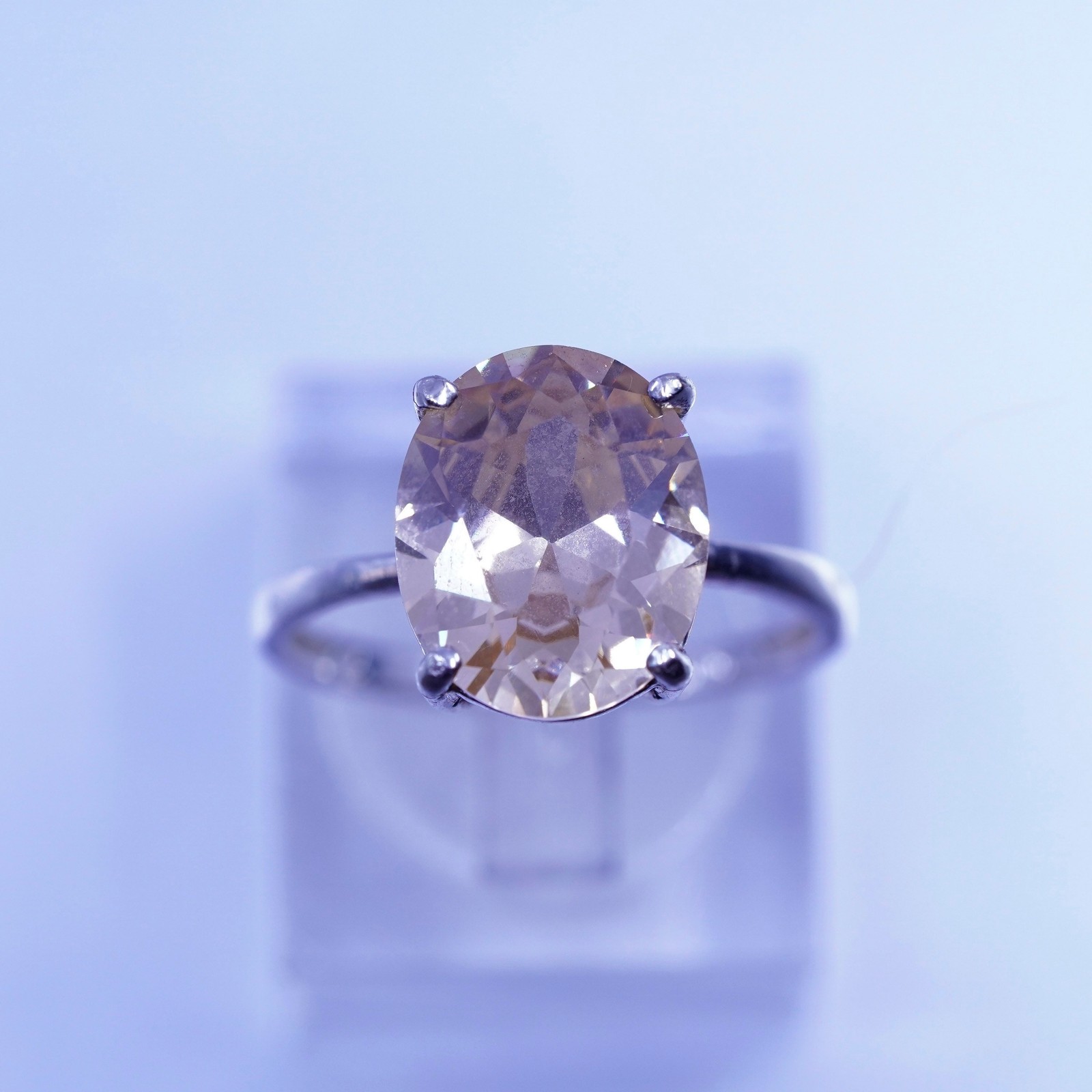 Size 7.25, vintage Sterling 925 silver handmade ring with oval citrine