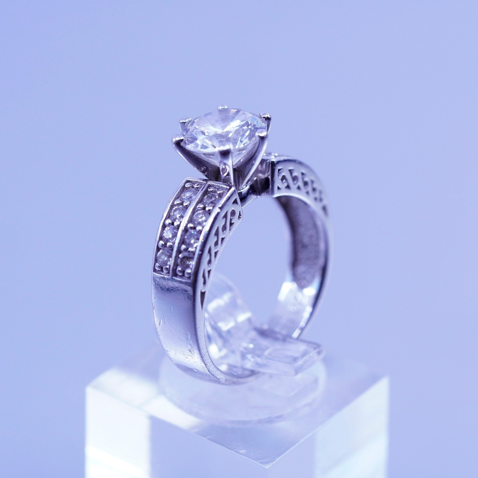 как выглядит Size 6.5, vintage Sterling 925 silver handmade engagement ring with cluster Cz фото