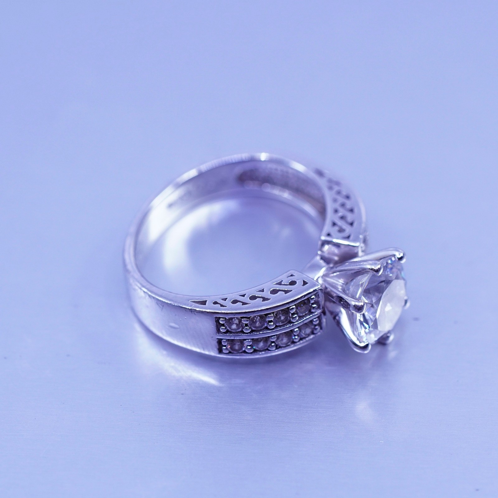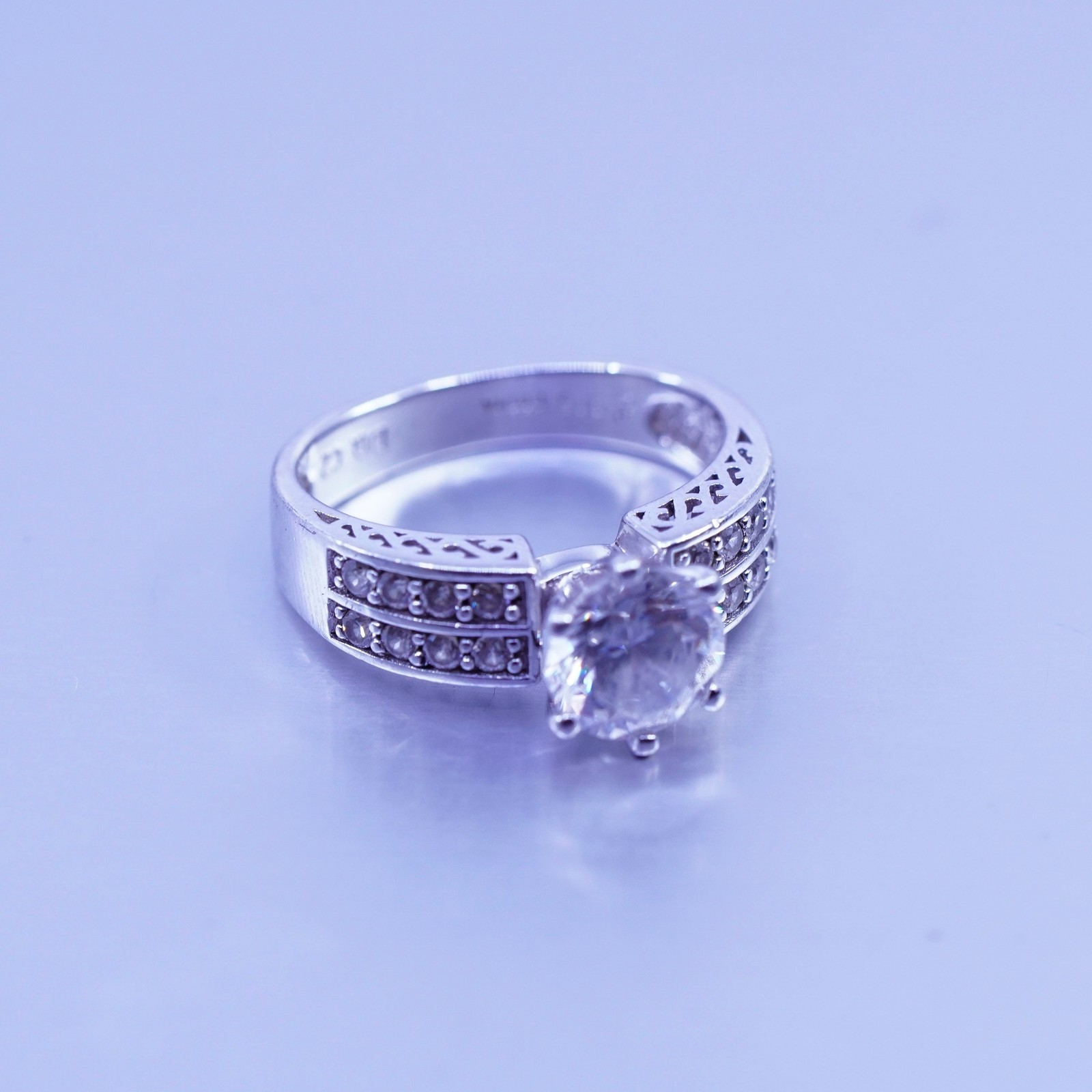 Size 6.5, vintage Sterling 925 silver handmade engagement ring with cluster Cz