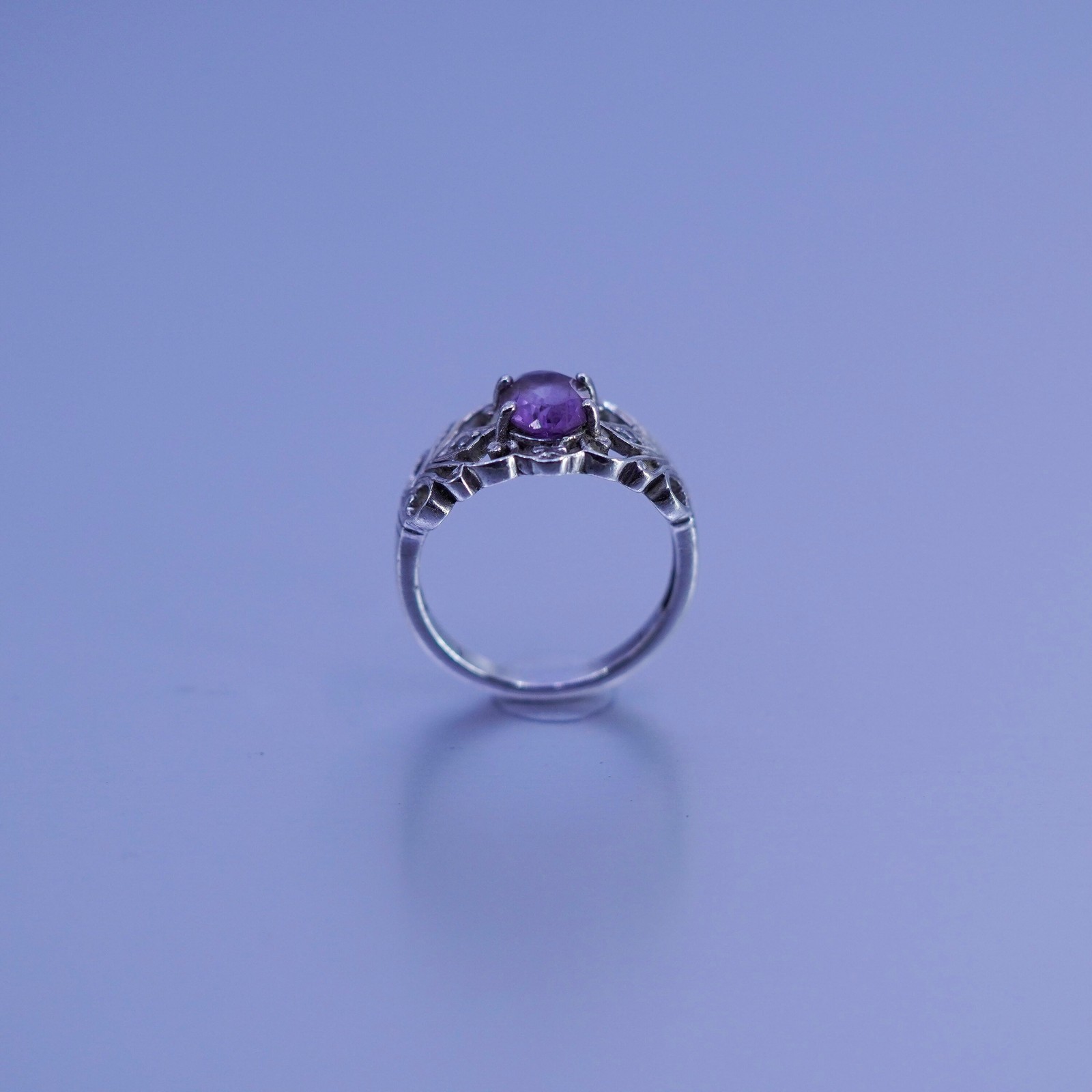 Size 7, vintage Sterling 925 silver handmade ring with amethyst and cluster cz