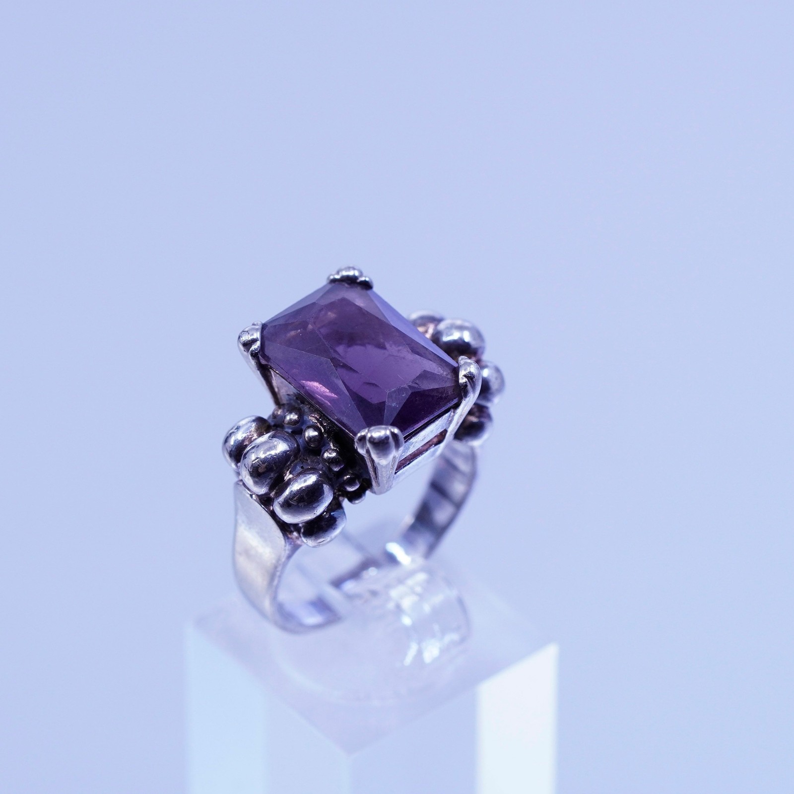 как выглядит Size 8, vintage Sterling 925 silver handmade ribbed ring with amethyst фото