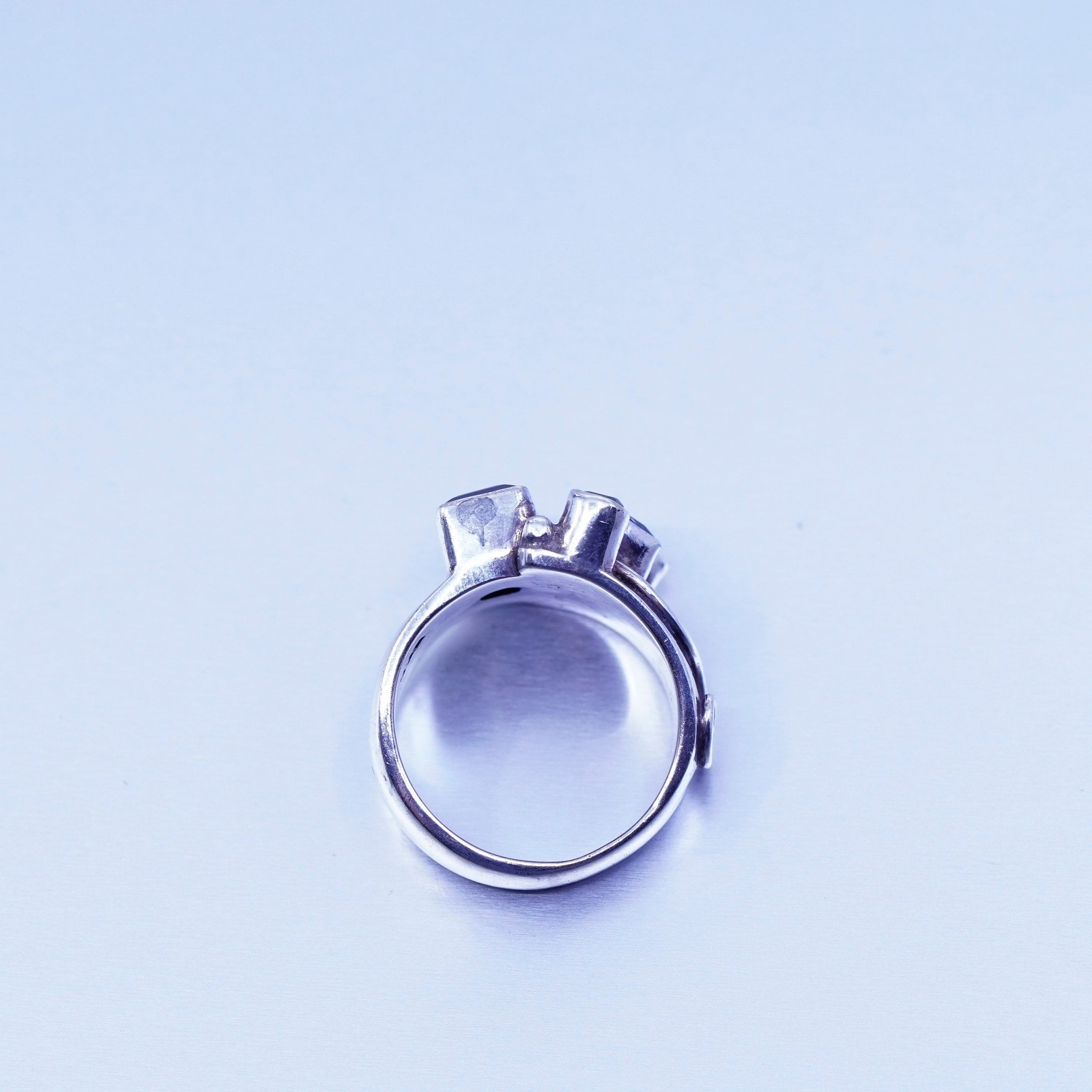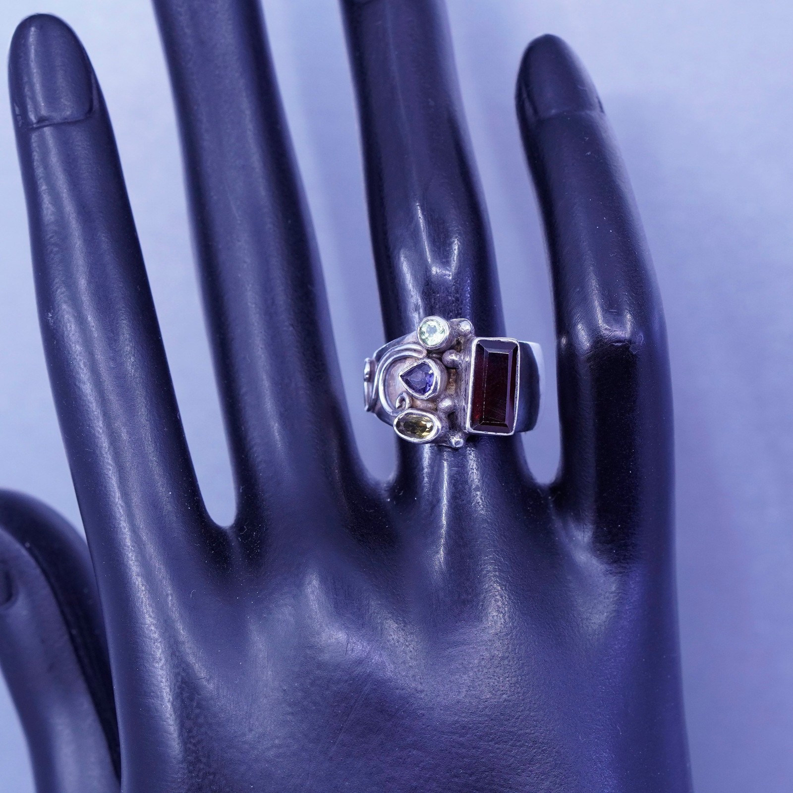 как выглядит Size 5.75, vintage Sterling 925 silver handmade wide ring citrine ruby peridot фото