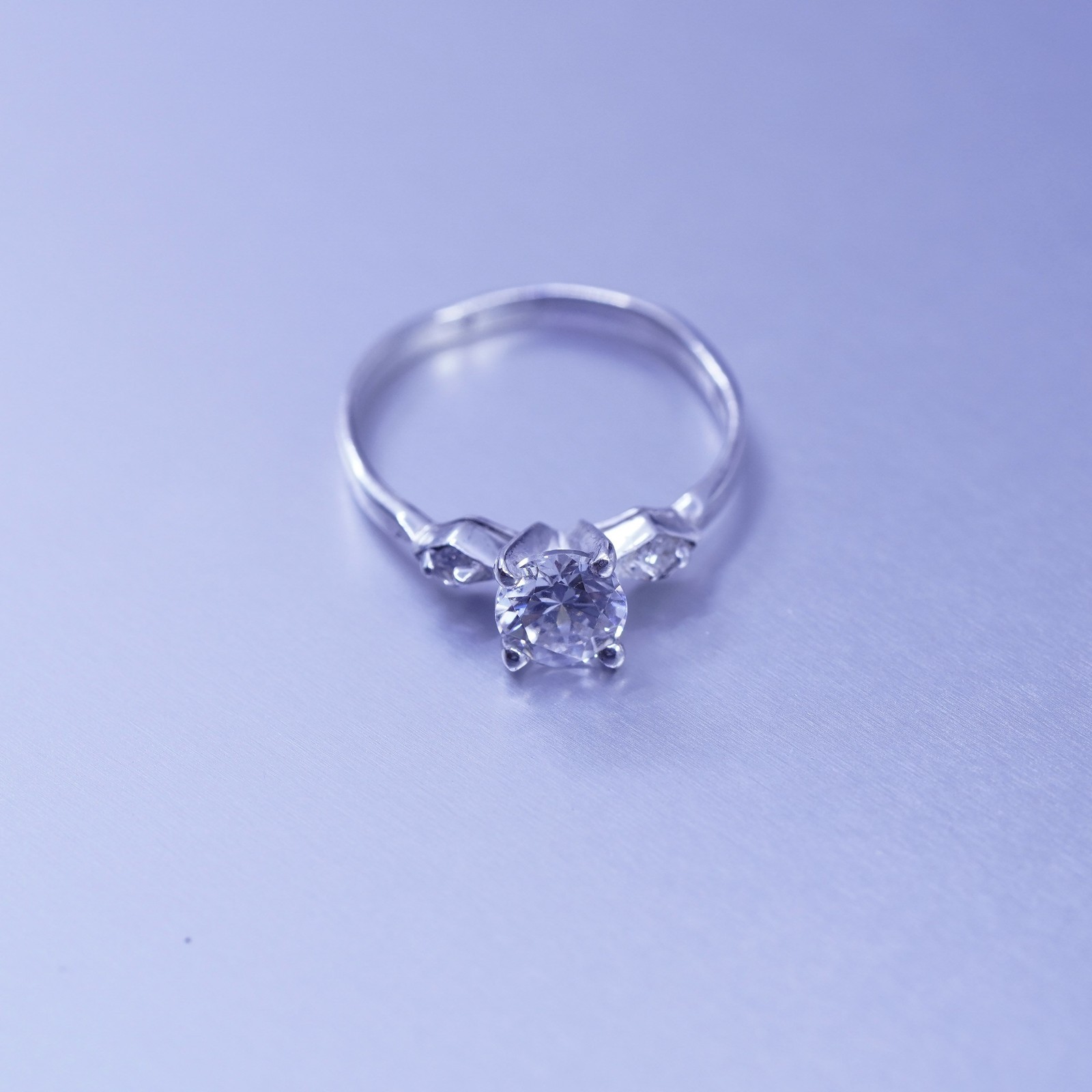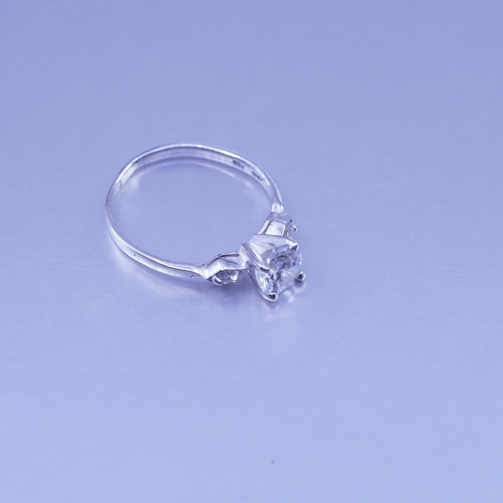 Size 7.5, vintage Sterling 925 silver handmade engagement ring with Cz