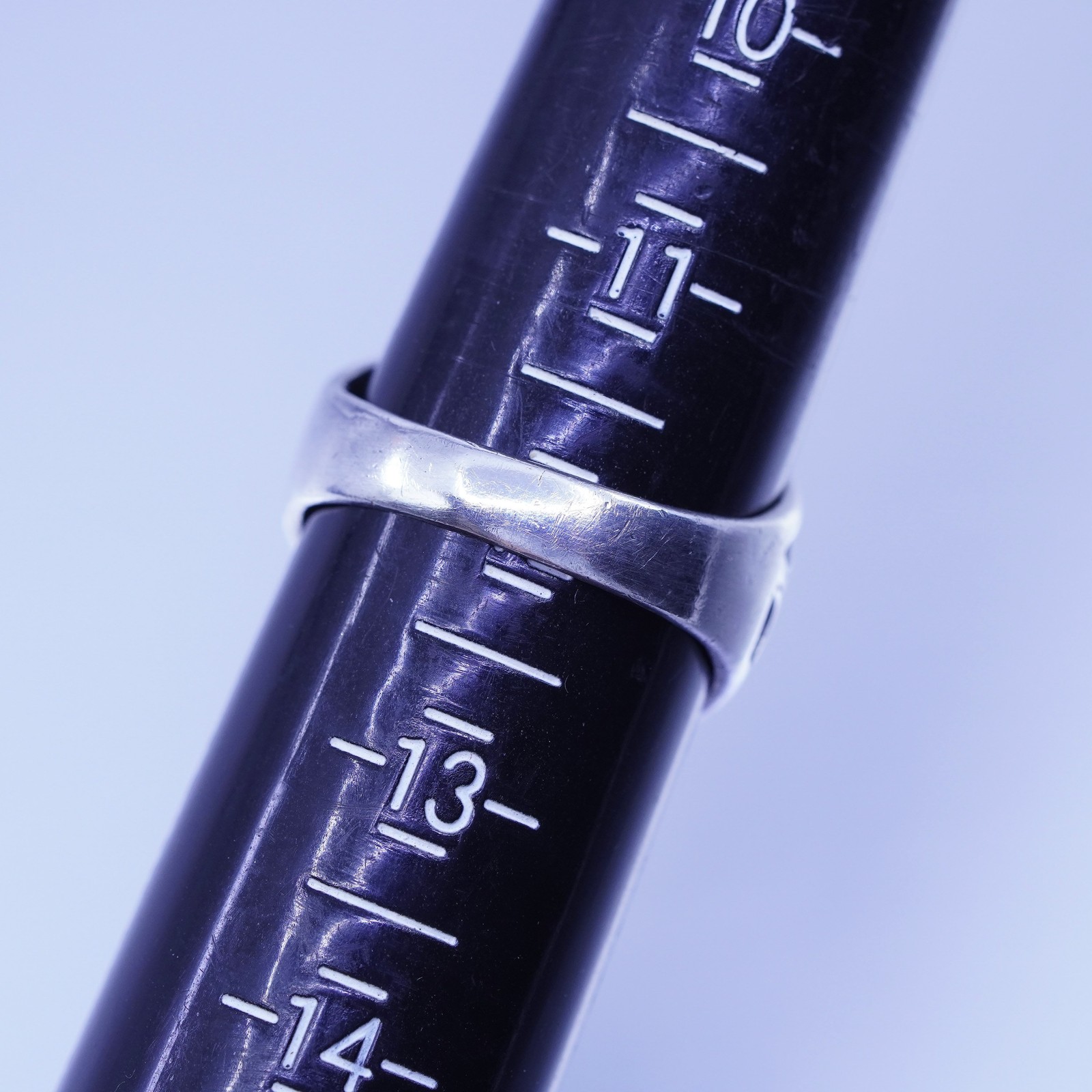 как выглядит Size 12, vintage statement Sterling 925 silver ring, cross band black enamel фото