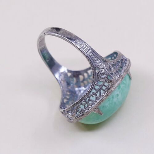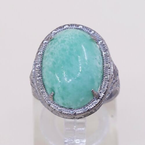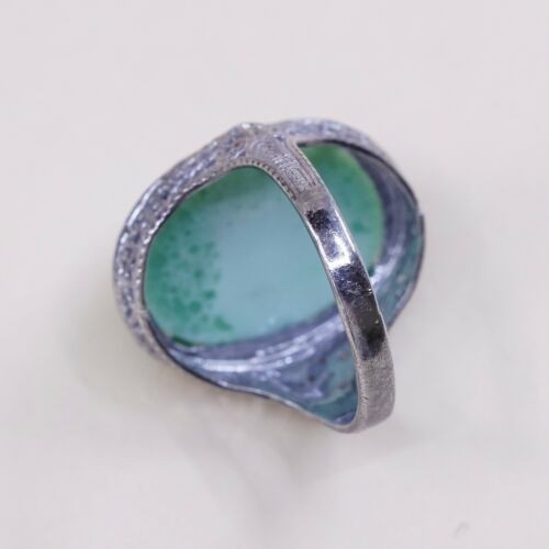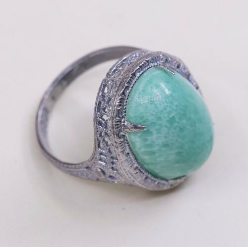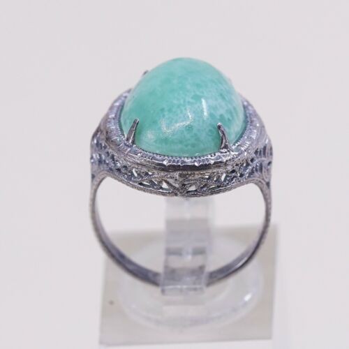 Sz 6, Vtg Thailand Handmade Sterling 925 Filigree W/ Turquoise Statement Ring