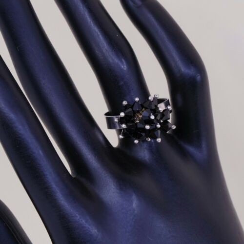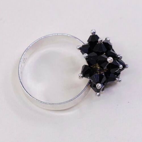 Sz 8.5 Vtg Tr 158 Sterling 925 Ring W/ Cluster Black Cz, Stamped 925 Mex