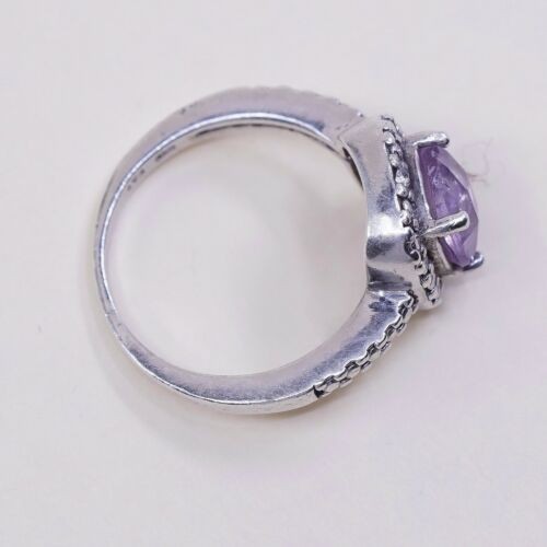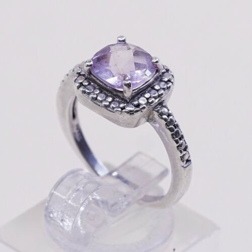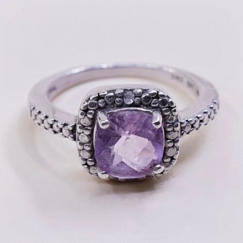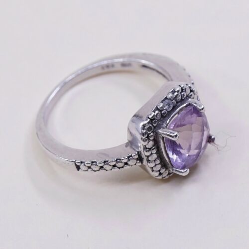 как выглядит Sz 5, Sterling Silver handmade Ring, 925 Ring W/ amethyst N Diamond Details фото