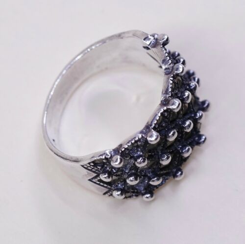 Size 6, Vtg Sterling Silver Handmade Ring, 925 Silver Band W/ Marcasite N Beads