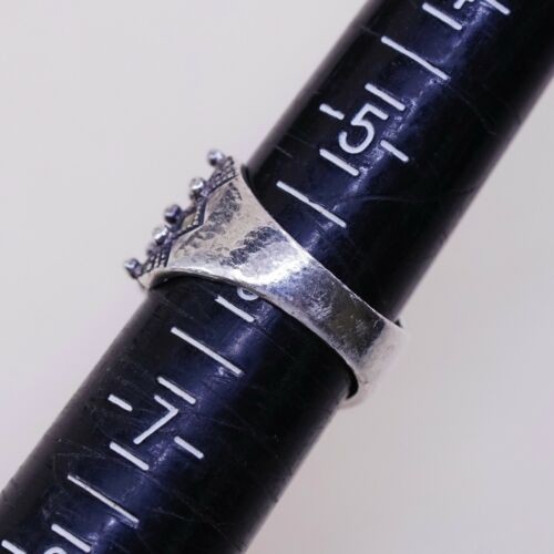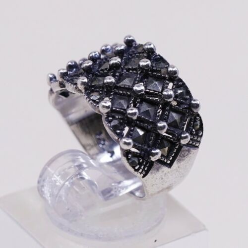 как выглядит Size 6, Vtg Sterling Silver Handmade Ring, 925 Silver Band W/ Marcasite N Beads фото