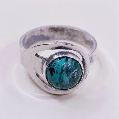 Sz 3.5, Vintage Israel Handmade Sterling Silver ring Turquoise