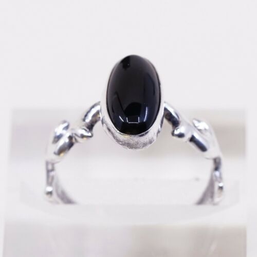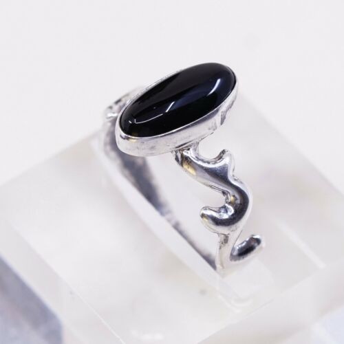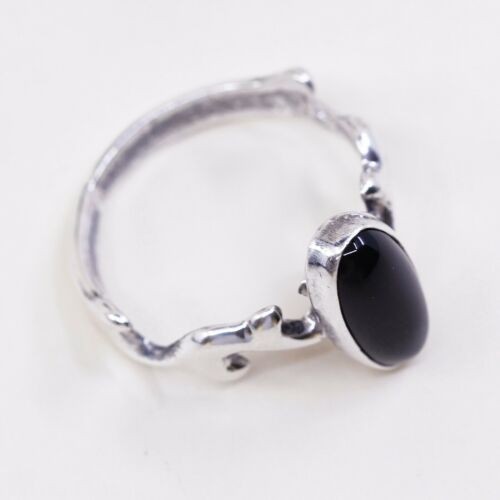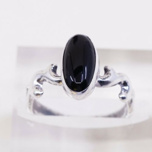 Sz 9.75, Navajo Lowell Draper Sterling 925 Silver Handmade Ring W/ Obsidian