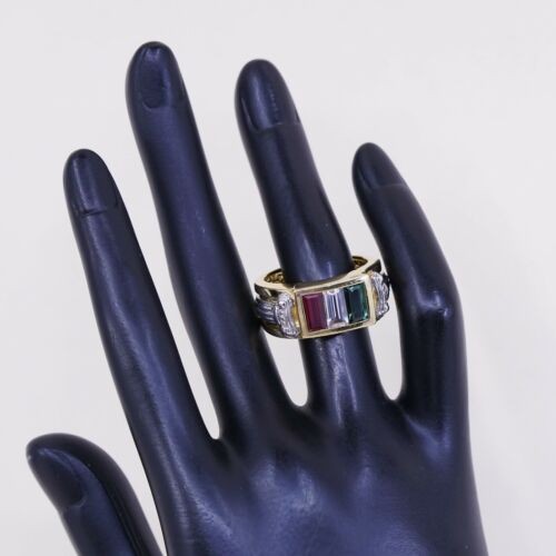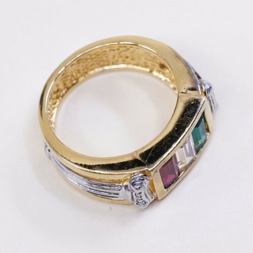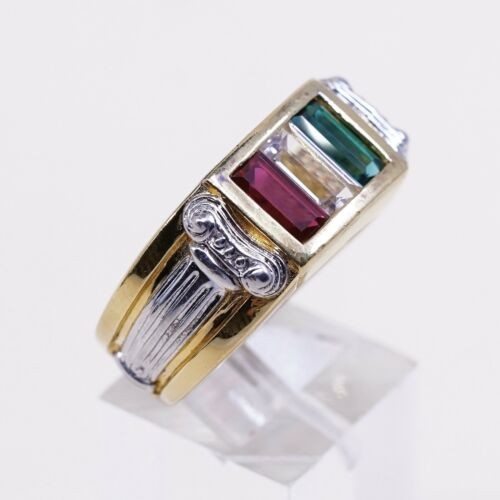 как выглядит Sz 10.75, vermeil gold over Sterling Silver Ring, 925 Band W/ Lab Ruby N Peridot фото